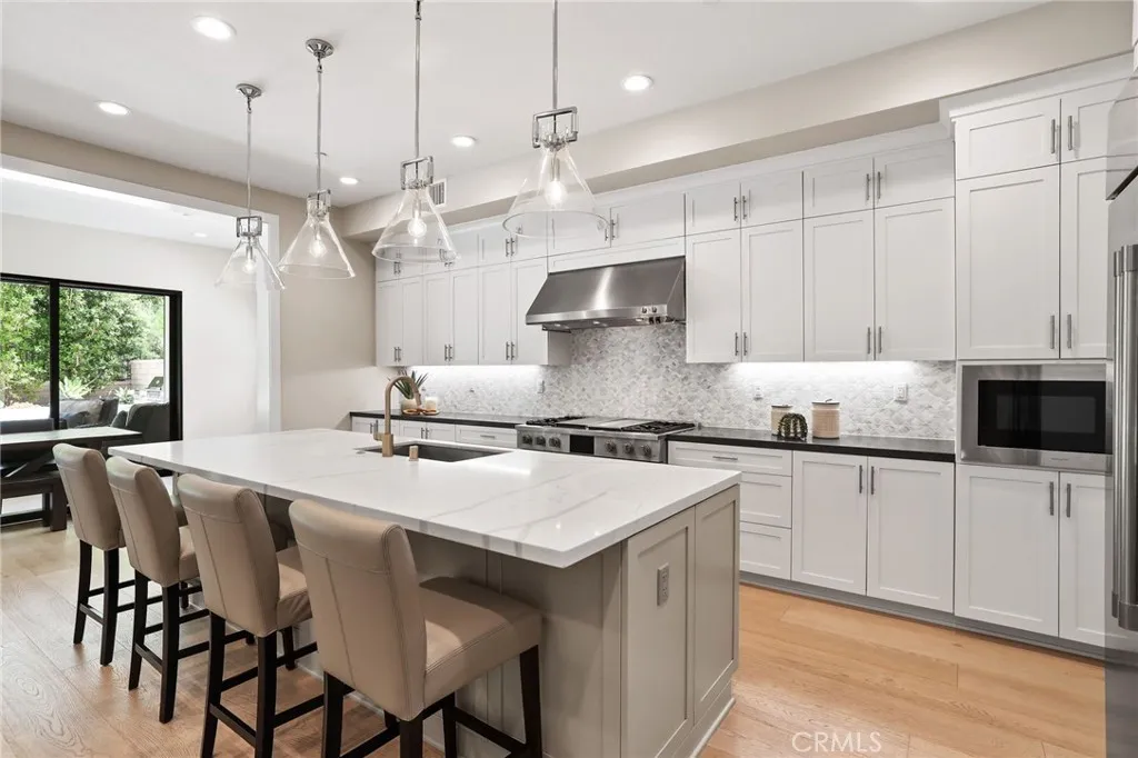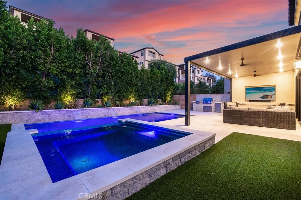 Incredible, One-Of-A-Kind Resort Style Pool Home, Fully Upgraded, Premium Lot Location, FULLY PAID FOR SOLAR! Sophistication and Elegance are the Hallmarks of this Impeccably Designed Home featuring Stunning Upgrades in every direction. Upon entry the Upgrades and On-Trend designs are immediately noticed with Stunning White Oak Harwood Floors that run through the entire home, Gorgeous Custom Feature Walls and Soaring Ceilings allowing for an abundance of Natural Light to flood the home. The Spacious Great Room features a Custom Fireplace and Modern Mantle, Plantation Shutters, Designer Interior Paint, and Sliding Panel Doors that open to the Award Winning Backyard Oasis. The Stunning Chefs Kitchen leaves nothing to the imagination with Stainless Steel Appliances including Built-In Stainless Steel Refrigerator, Custom Designer RH Pendant Lighting, Dual Tone Upgraded Quartz Countertops, Custom Artisanal Tile Backsplash, Beautiful Upgraded White Cabinets that stretch to the ceiling, Spacious Walk-in Pantry and Massive Center Island w/Bar Seating. Continue Outside and Prepare to be blown away by THE ENTERTAINERS DREAM BACKYARD. The Covered California Room offers the perfect Transition to the Backyard featuring 2 Ceiling Fans, Entertainment Nook with TV and Beautiful Porcelain Slab Mantle. Just beyond the California room sits the Stunning Pool and Jacuzzi w/ Pentair IntelliCenter Pool Spa Automation, Exquisitely Designed w/Pebble Tech Sheen, Limestone Decking, Waterfalls & Custom Pool Lighting. The Outdoor Upgrades also Include a Modern Fire Pit, Tropical Mature Lush Landscape,