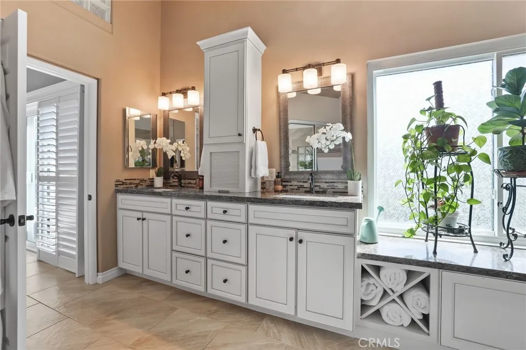 Tucked away on a private cul-de-sac in the prestigious guard-gated community of Rancho Cielo, this beautifully remodeled Brighton Glen home is where style, comfort, and serenity meet. From the moment you step through the door, you're greeted by soaring ceilings and streams of natural light across the living and dining room. Shutters frame each window, a cozy fireplace invites you to unwind,and the elegant dining space features a ceiling fan with lightperfect for gatherings. At the heart of the home lies a kitchen thats as functional as it is breathtaking. Thoughtfully redesigned, featuring crisp white shaker cabinets, luxurious quartz countertops, a charming farmhouse sink, and a spacious center islandperfect for gathering with friends or prepping a quiet dinner. Recessed lighting sets the mood, while built-in appliances add a sleek, modern touch. The kitchen opens seamlessly into the inviting family room, where tile flooring, elegant shutters, and a custom coffee bar with matching quartz counters and generous storage create a space made for connection and comfort. Downstairs also features a chic half bath with an Italian glass custom mirror and a well-designed laundry room with built-in cabinetry. Upstairs, you'll find three spacious secondary bedrooms, each withvaulted ceilings, luxury vinyl flooring, shutters, ceiling fans with lights, and mirrored sliding closet doors. The upgraded secondary bathroom boasts a double-sink vanity with white shaker cabinets, custom hardware, recessed lighting, tile floors, a tub/shower combo, and an Italian glass custom mirror. The primary