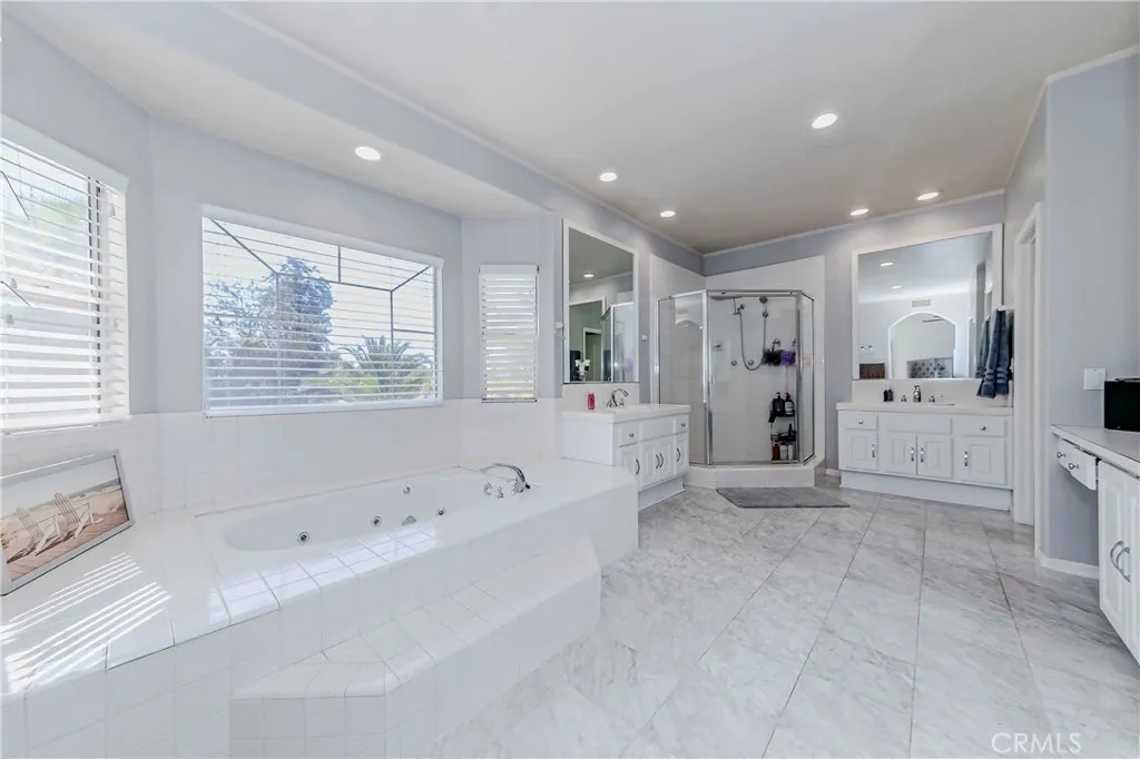 Welcome to the prestigious Sunnymead Ranch Community, beautifully tucked in the scenic hills above Moreno Valley! This lush, LAKE CENTERED neighborhood is renowned for its tranquil atmosphere and features one of the LARGEST LAKES in the countyperfect for boating, fishing, and enjoying resort-style amenities such as a clubhouse, fitness center and more. Set on a MASSIVE lot, this 4-BEDROOM residence boasts striking curb appeal with newer drought-resistant turf and a HUGE BEAUTIFUL LUSH TROPICAL backyard oasis featuring a sparkling poolperfect for entertaining guests or unwinding in your own private paradise. The backyard is truly VACATION LIKE, offering endless space for kids, pets, and gatherings! Inside, a grand double-door entry opens to soaring vaulted ceilings and light-filled interiors. The layout is thoughtfully designed with 2 MASTER BEDROOMS, each with ensuite bathsone conveniently located downstairs, and a luxurious primary retreat upstairs complete with a dual-sided fireplace, spa-inspired bath with jetted tub, walk-in shower, dual vanities, oversized walk-in closet, and a private balcony with sweeping views. Generous living spaces include a formal dining room, formal living room, family room with fireplace and custom wet bar, and a versatile open-concept chefs kitchen with granite countertops, stainless steel appliances, upgraded cabinetry, and walk-in pantry. Upstairs, a SPACIOUS LOFT offers endless options as a den, game room, or even a bedroom, alongside two oversized bedrooms with a dual-sink hall bath. Included is a dedicated office which can also be used as