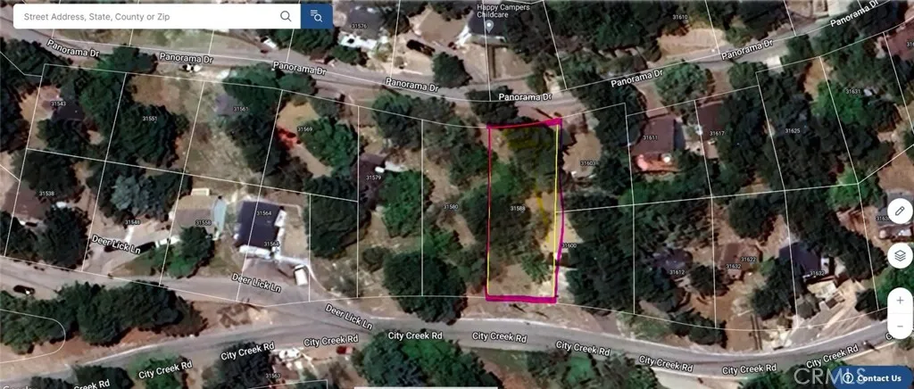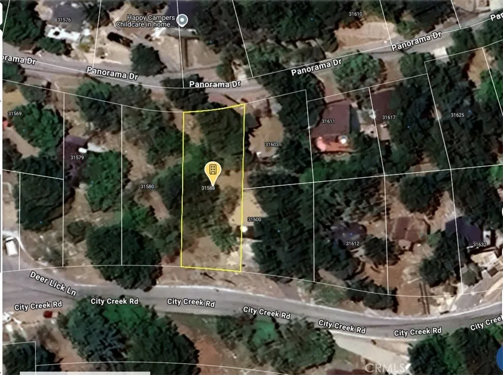 Nice lot with beautiful view, with access through two streets ( Panorama Dr and Old City Creek Rd.) with a great potential in Running Springs, CA about 38 miles South East of Hesperia, CA . You could build a house /cabin to use for weekends get away in the San Bernardino County mountains. Close to Silverwood Lake, Lake Arrowhead, Gregory Lake, Big Bear Lake. This lot is next to a house located at 31600 Old City Creek Rd. and it is about 50Ft. wide by 135ft. long and it is next to another vacant lot which is not included in the sale. Seller may carry the note for up to 36 months with $15000 Down and balance carrying 9% in interest. 36 payment of approximately $791.81 to pay it off. No credit / Income check only Lenders title insurance required. No Prepayment penalty if you want to pay it off sooner. Buyer must verify all information with the city / County, including, but not limited to Zoning, availability and cots to connect to Utilities, Lot size, building Permits / costs, etc; prior to purchase. Owner is a California Real Estate Broker.