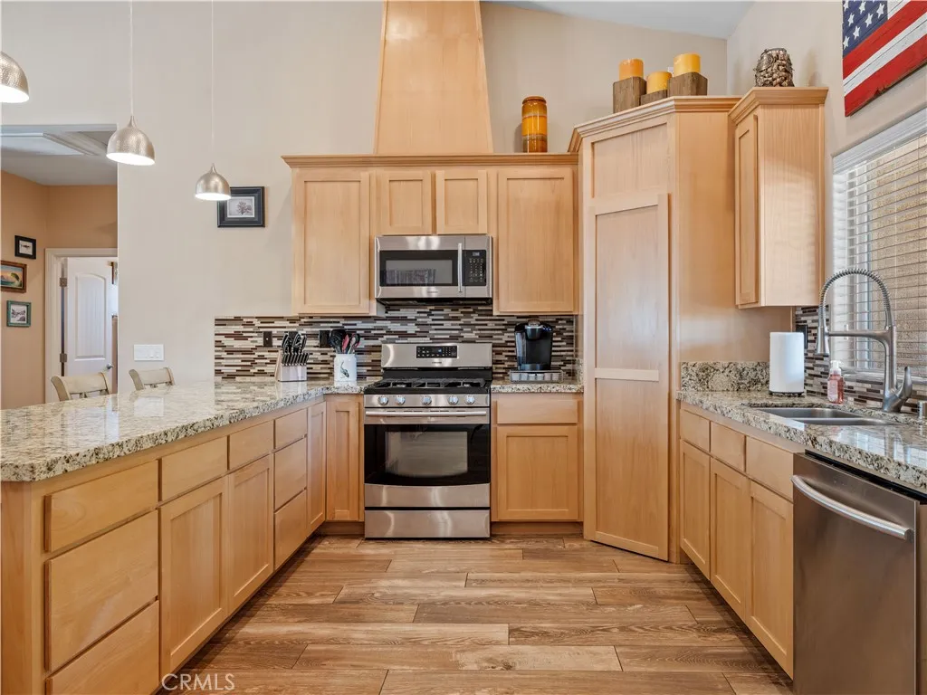 REDUCED TO SELL..Stunning POOL home in quiet, much sought after neighborhood, this one is a must see, you will not be disappointed. Upon entering this home, you are welcomed into a warm and inviting living area filled with natural light streaming through a large picture window. The spacious layout features vaulted ceilings, and a veneer stone fireplace with gas logs and raised hearth. Neutral -toned upgraded carpet blends seamlessly with rich wood-like tile flooring. The open floor plan leads effortlessly toward the kitchen which offers modern conveniences with thoughtful design elements creating stylish yet highly functional environment suitable for both everyday living and entertaining. Beautiful polished granite counter tops with stylish backsplash, pine cabinetry, complemented by sleek stainless steel appliances. The heart of the home features a beautiful oversized island, perfect for casual dining, or gathering with friends and family. The kitchen also offers walk in pantry and pendant lighting. Split floor plan with a large primary suite on one side of the home and a guest room, guest bath and junior suite with bath on the other side. The spacious master suite designed for comfort and relaxation provides a roomy walk in closet with luxury built in closet organizer with glass panel doors. En suite bath highlights dual sinks set in granite counter tops, walk in shower and a separate soaking tub/shower. The junior suite also displays custom closet organizer, granite counter tops in bath with ample storage, full tub/shower combination along with thoughtful details that ad