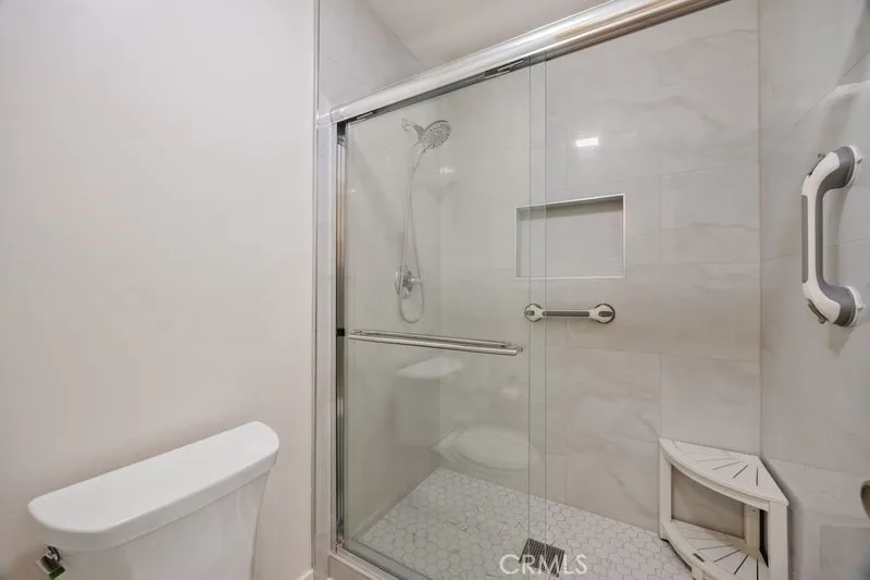 Tucked away as the sole available home on the desirable greenbelt, this charming residence in The Terraces offers a unique opportunity for tranquil living. Step inside to a home that feels brand new, with a freshly painted interior, new baseboards, and no popcorn ceilings to be found. Natural light streams in through updated Milgard dual-pane windows, which come with a transferable warranty for peace of mind. The entire home features beautiful new waterproof laminate flooring, creating a seamless and stylish flow from room to room. The kitchen and bathrooms have been completely transformed with elegant new quartz countertops, offering a sleek and modern feel. In the primary bath, you'll find a brand-new tiled shower, while both bathrooms feature newer toilets for a crisp, clean look. Comfort is key in this home. The newer HVAC system ensures year-round comfort, and the bedrooms are outfitted with stylish plantation shutters with valances. The primary bedroom is a true retreat with a large walk-in closet, a new ceiling fan, and a privacy shade. The kitchen boasts wooden blinds and recessed lighting, which extends to the primary vanity area, adding a sophisticated touch. Practicality meets convenience as the refrigerator, washer, and dryer are all included in the sale. The secondary bedroom has mirrored wardrobe doors, and the garage offers a generous amount of storage space. Potential to add a loft for more space as many units in tract have done. This isn't just a house; it's a meticulously cared-for home waiting for its next owner. With its prime location and thoughtful upg