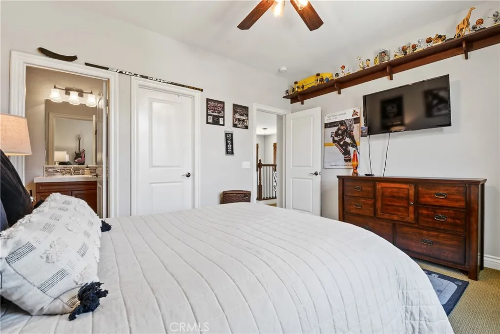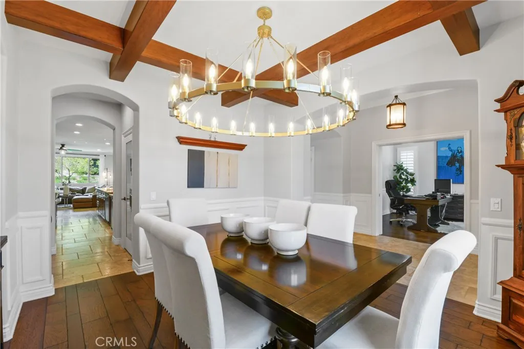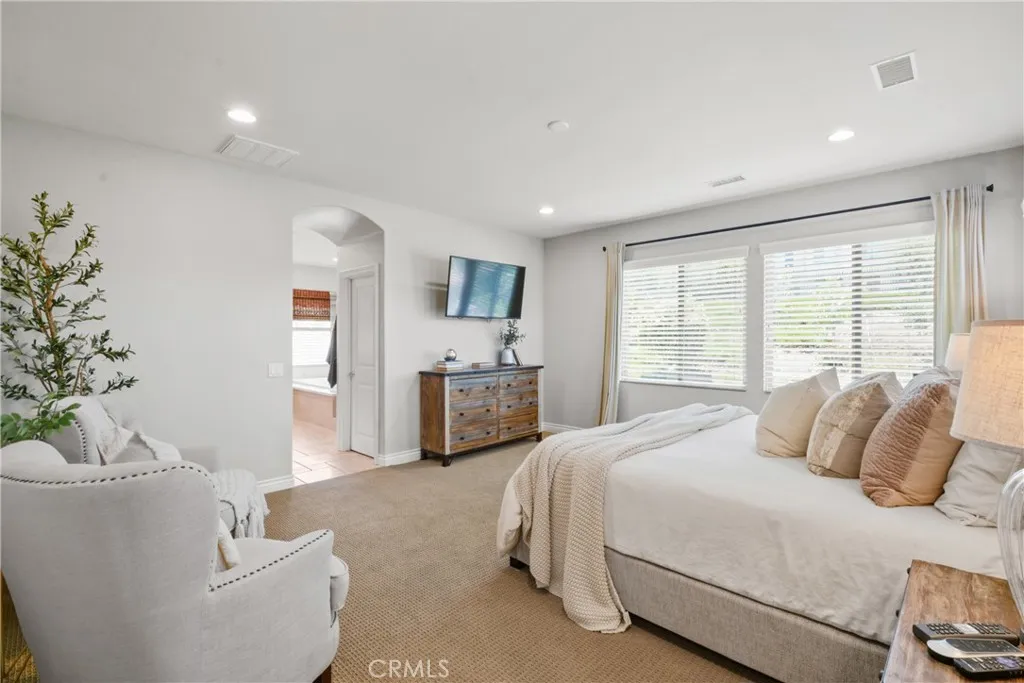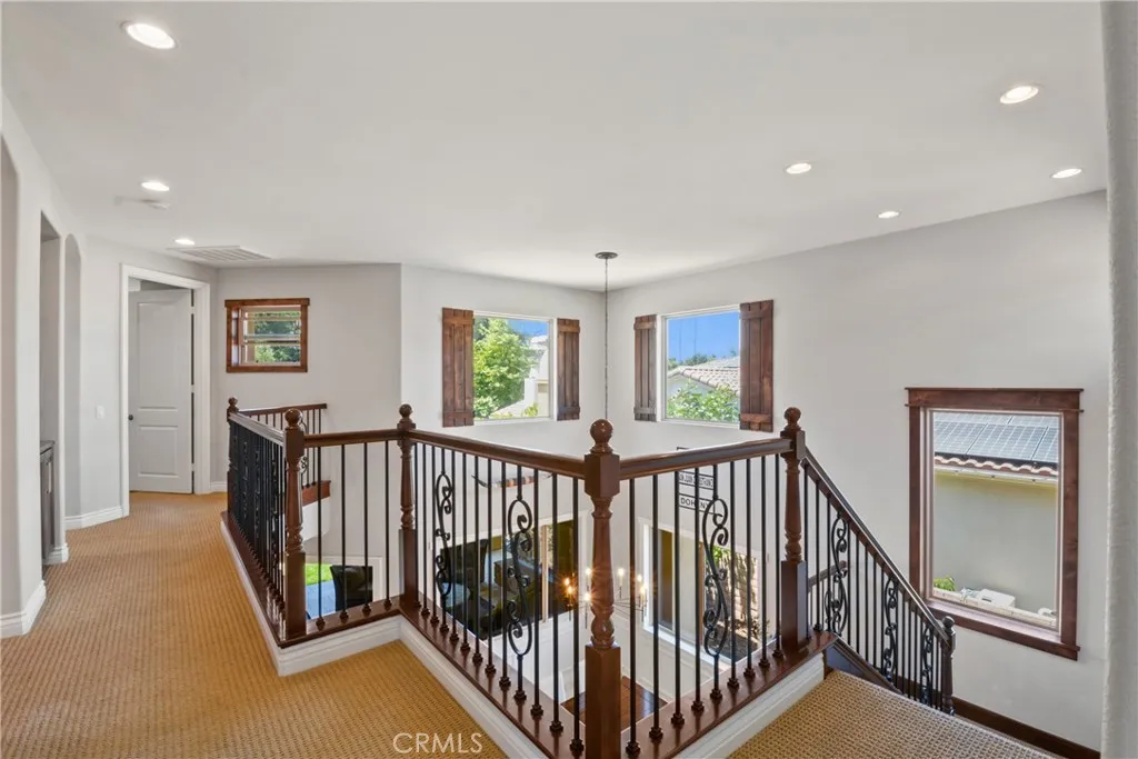 Rancho San Juan's gated community of Whispering Hills in the hills of San Juan Capistrano. Excellent inside tract location on one of the largest lots, this beautiful home features 5 bedrooms, 4.5 bathrooms, along with formal office, loft area, bonus family room. Bi-fold doors open to covered outdoor California room with built-in fireplace, huge private grass backyard with fruit trees, definitely large enough to have a pool. Inside features: custom tumbled travertine flooring, formal dining room, butler pantry, gourmet kitchen with large island for entertaining, light breakfast nook area, upgraded cabinetry, large family room with fireplace and bonus area for entertaining or a pool table, vaulted ceilings, one bedroom and bath downstairs, upstairs has good size secondary bedrooms, loft area with built-in desk, laundry room, primary suite with fireplace, primary bathroom has separate tub and shower and dual vanities, along with walk-in closet. Additional upgrades include recently added new windows throughout, also has fully owned solar. This home is absolutely beautiful and turn-key. Walking distance to San Juan Hills High School. Gate community has tennis courts, picnic area, and playground, along with walking trails. Close to all South County has to offer.