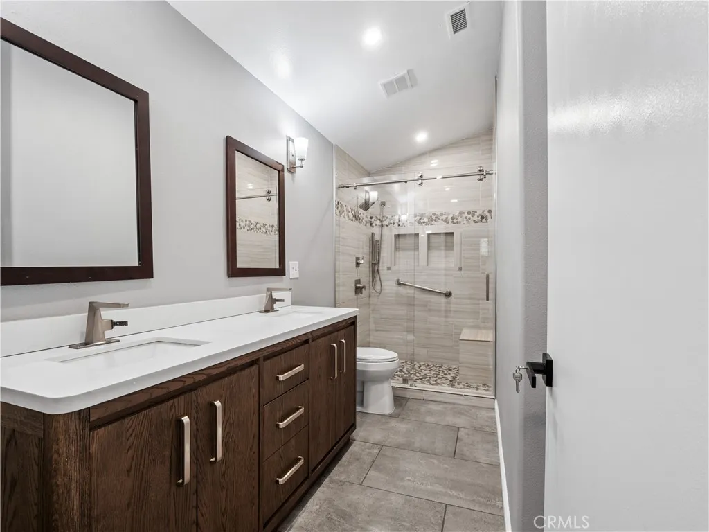 Welcome to 11374 Old Ranch Circle, a stunning home located in the highly desirable community of California West. Tucked away on a peaceful cul-de-sac, this beautifully updated home offers the perfect balance of elegance, functionality, and California indoor-outdoor living. Featuring 2 bedrooms, 3 bathrooms, and 1,427 square feet of living space, this home is ideal for both comfortable living and sophisticated entertaining. Step inside to find a dramatic entry with soaring ceilings and an abundance of natural light that pours through oversized windows. The formal living room is anchored by a fireplace creating a welcoming space for gatherings, and sliding glass doors that lead to the outdoor patio surrounded by lush trees and greenery. The chefs kitchen is a true highlight, complete with custom cabinetry, Quartz countertops and stainless steel appliances. The main level also offers a 1/2 bathroom. Upstairs, the luxurious primary suite serves as a private retreat, featuring vaulted ceilings, dual walk-in closets, and a spa-inspired en-suite with dual vanities, and a separate glass-enclosed shower. The secondary master bedroom is spacious and bright, with a walk-in closet and is complemented by its own updated bathroom. Additional highlights include an attached 2-car garage with direct access, an in-unit laundry, central heating and air conditioning, and elegant upgrades throughout including engineered wood flooring and recessed lighting. The community offers its residents 2 separate sparkling pool and spa areas, each with large grassy areas to enjoy. Mature landscaping surrou