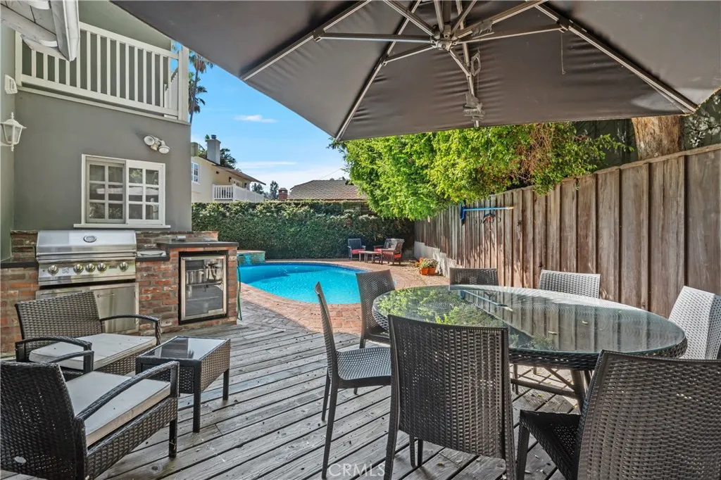 This 5-bedroom, 5-bath spacious pool and spa home offers nearly 3,300 square feet of comfortable living in the heart of prime Studio City. The chefs kitchen flows seamlessly into a welcoming living area with a decorative fireplace and access to a lovely patio perfect for relaxing or entertaining outdoors. A separate formal dining room and an additional living area, provide versatile gathering spaces, while a dedicated office offers a quiet place to work from home. There is an ensuite bedroom downstairs, perfect for guests or in-laws. Enter the backyard from the dining room or family room and enjoy the privacy of the pool and spa, beautifully surrounded with greenery and brick. Many trees on the property offer an abundance of shade. Upstairs, youll find four generously sized bedrooms and two full bathrooms, including a luxurious primary suite featuring a spa-like bathroom with a soaking tub, separate walk-in shower, and an expansive walk-in closet. Just around the corner is Tujunga Ave-there is plenty of shopping and restaurants in the area. Close to freeways and easy access to get "over the hill".