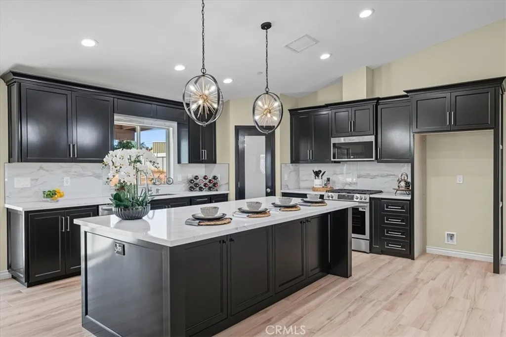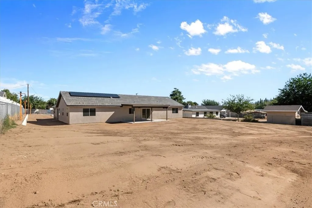PRICE REDUCED!! BRAND-NEW HOME WITH AN ELEGANT DESIGN LOCATED IN A QUIET NEIGHBORHOOD OF HESPERIA!! It features 4 large bedrooms and 2.5 Baths. Energy-Efficient Upgrades Includes PAID SOLAR PANELS, LED lighting, double-glazed low-energy windows, a tankless water heater, fire sprinklers, and high-quality insulation for maximum efficiency. Open Floor Plan with beautiful ceramic Tile floor throughout. Spacious Kitchen with an Oversized Island (9'x4') featuring an eating bar and decorative pendant lights above. Custom cabinets, self-close doors and drawers, a Trash drawer, and a large pantry with shelves. Beautiful Quartz countertops, backsplash, and Stainless-steel appliances. Large Main suite with room for a seating area and cozy carpeting, an elegant master bath full of natural light with separate tub and shower, a large mirror, and a spacious walk-in Closet with custom shelves. Upgraded bathrooms with Quartz countertops, a private laundry area, a double-entry door, and exterior light fixtures. 220V wiring is ready in the Kitchen, laundry, and water heater wall. Spacious 2-car garage with remote controls. This move-in-ready home offers everything you need and more! Dont miss your chance to own this beautiful new home in Hesperia.