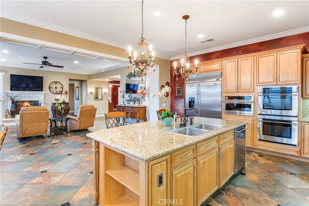 Welcome to Allesandro Heights Stellan Ridge Estates, a masterpiece of luxury and privacy on a vast 2.93-acre lot. This single-story Pulte-designed home is built for grand-scale entertaining and comfortable multi-generational living. The elegant, open floor plan features a spacious Great Room, Living Room, Dining Room, and a private Library with French doors leading to a private courtyard with fireplace. The gourmet chef's kitchen is a culinary dream, boasting stainless appliances, double ovens, pot-filler, oversized island, breakfast nook, and a walk-in pantry. Escape to the luxurious primary suite, a private retreat with its own sitting area, fireplace, and a spa-like bath with an expansive walk-in closet. High-end finishes throughout the home include crystal chandeliers, plantation shutters, wood paneling, and custom built-ins. Exceptional features include a 3-car attached garage plus a detached 2-car garage with a private entrance, ideal for a casita, home office, or generational suite. This private sanctuary offers breathtaking city, hill, and mountain views, showcasing stunning sunsets and sparkling night lights. Truly the best value in luxury living.