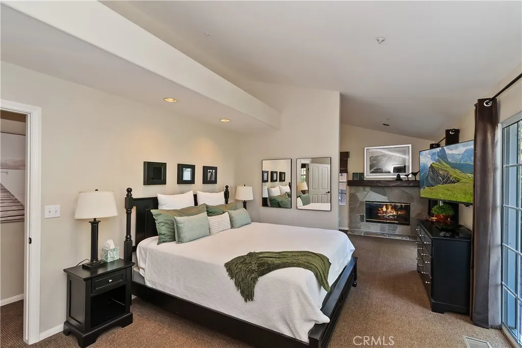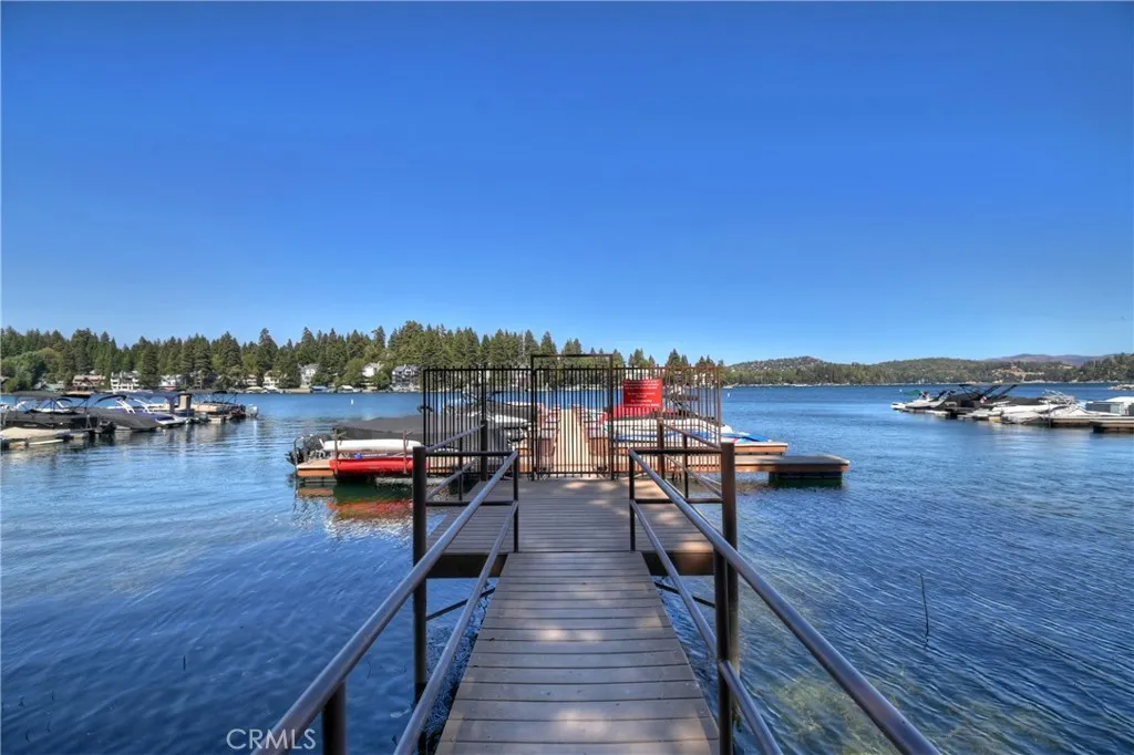 Nestled back among the dogwoods, this beautifully landscaped Lake Arrowhead home combines mountain charm with modern living. With level entry and a two-car garage, ease meets elegance from the start. Enter off of the front porch that invites you in to discover your next adventure. Inside, the great room impresses with floor-to-ceiling windows, dark wood beams, river rock fireplace, and rich flooring. The open-concept design flows into the gourmet kitchen featuring stainless steel appliances and sliding glass door to the back patio off of dining, perfect for entertaining and a fire pit to sit back and relax in your outdoor retreat area. A half bath completes the main level. Upstairs, discover three comfortable bedrooms and a laundry area, highlighted by the primary suite with its own fireplace and a private balcony draped in climbing wisteria serene mountain retreat. The lower-level bonus room offers flexibility as a movie theater, game room, or private hideaway. Adding to the lifestyle, a dock is available for purchase just steps away in one of Lake Arrowheads most desirable spots near the Resort, Yacht Club, and a short walk to the Village for dining and shopping. Boat available for purchase as well outside of escrow.. Offered turn-key furnished, this home is ready to enjoy from day one. A few of the amenities of this home are: fire sprinklers throughout, snow blower, central air and heating, back up generator, 5 flat screen TV's with Apple TV, central vacuum and full alarm system. Boat is also available for purchase! 2021 Yamaha 19.5' jet hours approx 200