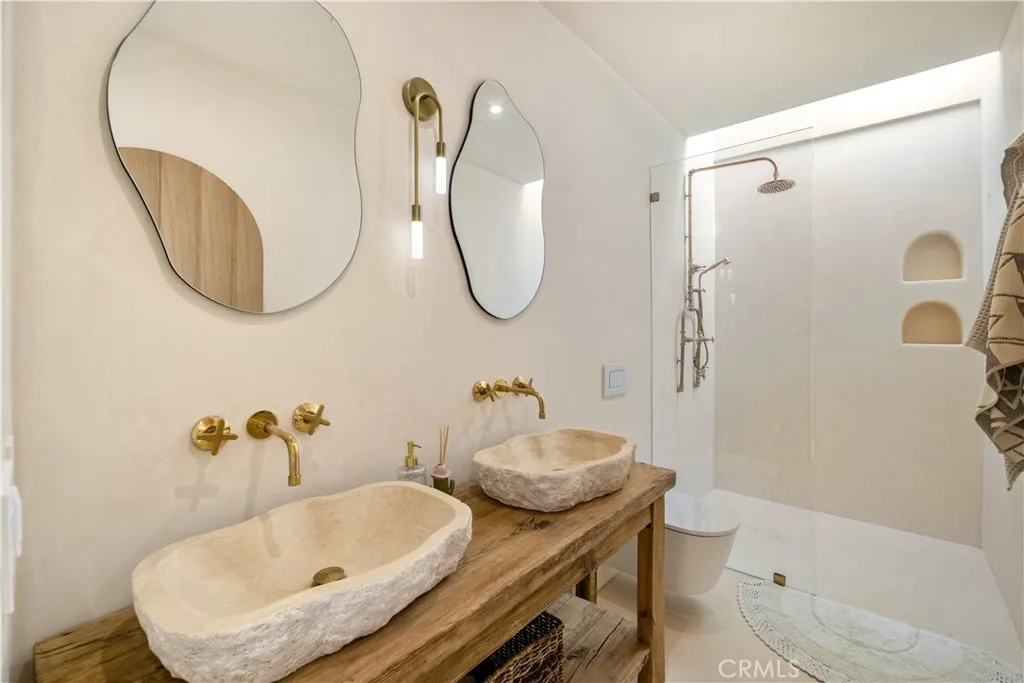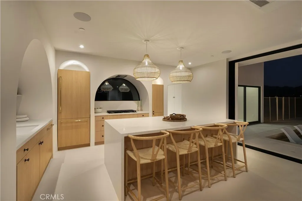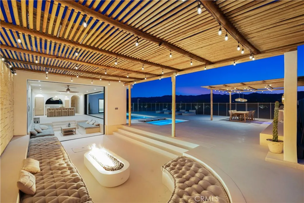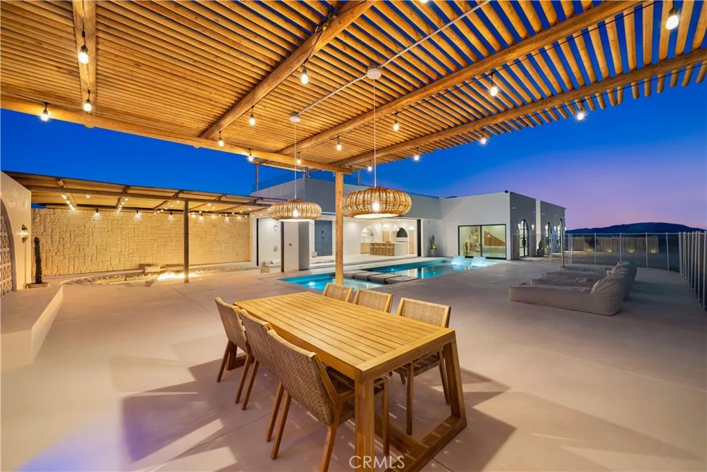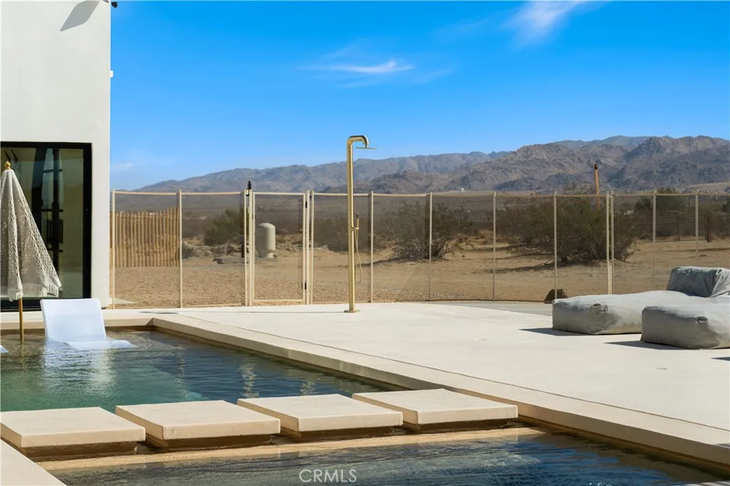 ATTENTION INVESTORS - High Income property ,Stunning Ibiza-Style Desert Oasis: A Once-in-a-Lifetime Opportunity Welcome to your dream home a unique 1,540 sq. ft. Ibiza-style residence nestled in the breathtaking desert landscape. This fully custom property offers an unparalleled living experience, perfectly designed for both relaxation and entertainment. Upon entering this exquisite home, you will be greeted by an impressive 30-foot pocket door that seamlessly merges indoor and outdoor living, allowing you to fully appreciate the natural beauty of the surrounding 2.18 acres, complete with stunning views of the Joshua Tree Monument. The design promotes an effortless flow throughout the space, making it ideal for gatherings or tranquil evenings. Step outside to discover over 700 sq. ft. of rooftop space, featuring a stylish pergola that provides 360-degree views of the desert landscapean ideal backdrop for sunset cocktails or stargazing. The expansive outdoor deck boasts a sunken seating area capable of accommodating over 20 guests, making it an entertainer's paradise. This home is meticulously crafted with imported custom furniture and finishes, showcasing the finest materials. Each corner of this residence radiates charm and sophistication. Culinary enthusiasts will appreciate the full BBQ kitchen, perfect for summer cookouts, while the sunken fire pit and additional rooftop fire pit create an inviting ambiance for evening gatherings under the stars. Adding to the allure of this property is a large pool complemented by an oversized jacuzzi, providing a luxurious retreat pe