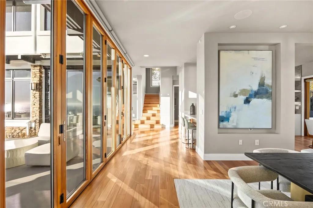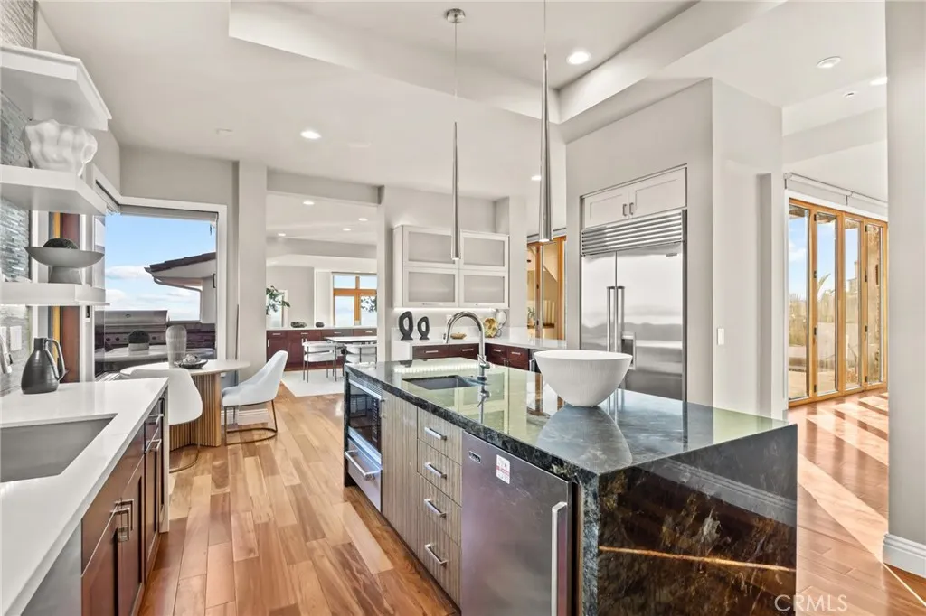 Perched in one of the worlds most celebrated coastal destinations, this rare estate-sized residence in Laguna Beach offers a lifestyle of unmatched luxury and breathtaking beauty. Just blocks from the beach and the vibrant Village, the home commands sweeping panoramic views of Catalina Island and iconic Main Beachan extraordinary vantage point few properties can claim. Spanning over 6,000 square feet of refined living space, this gated estate rests atop a generously elevated one-third acre lot, designed to maximize privacy and showcase the stunning seascape. The exterior features an infinity-edge pool that seemingly spills into the Pacific, a three-car attached garage, and a multi-vehicle motor court, all framed by sculpted hardscape and a curated palette of coastal succulents. Inside, the home is a masterclass in architectural sophistication and custom craftsmanship. Highlights include: a gourmet chefs kitchen with premium finishes, a glass elevator offering ocean views on every ride, exquisite 3/4" thick Brazilian cherry wood flooring throughout for timeless beauty and durability, a dedicated home theater for cinematic indulgence, and fireplaces in the living room, primary suite, and outdoor terraceperfect for cozy evenings by the pool. The layout features three luxurious bedroom suites and a spacious office that easily converts to a fourth bedroom, offering flexibility for guests or remote work. Smart home amenities abound, including: integrated stereo speakers throughout, a sophisticated lighting control system, dual-zone heating and air conditioning, and comprehensive