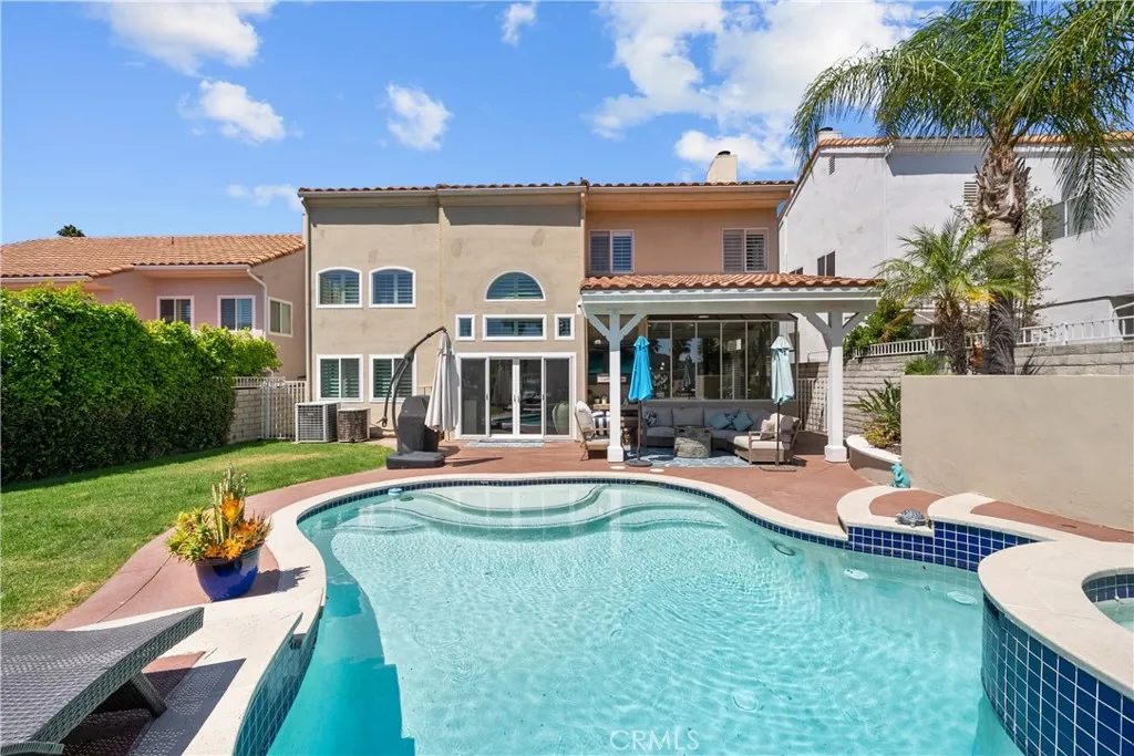 Welcome to this move-in-ready remodeled gem in the heart of Stevenson Ranch, offering nearly 2,600 square feet with 4 bedrooms and 3 bathrooms. Youll love the open floor plan with soaring ceilings, abundant natural light, and newer energy-efficient windows. The remodeled kitchen is gorgeous, a true gathering spot with tons of quartz countertop space, a large center island, built-in fridge, and double ovens. Step outside to your own private retreat with incredible mountain views, a sparkling pool and spa, and a shady covered patio perfect for relaxing or entertaining. Upstairs, the primary suite features a cozy fireplace, sitting area, walk-in closet, and remodeled bath with soaking tub, shower, and quartz vanity, while a first-floor bedroom and bath are ideal for guests or a home office. Updates include beautifully remodeled bathrooms and a striking new front door, plus the convenience of a 3-car garage, very low HOA, and close proximity to top schools, parks, shopping, and freeway access.