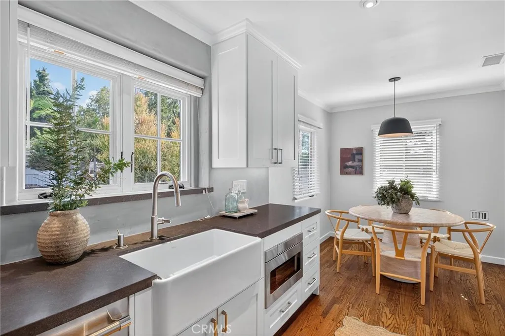 New Price! Discover this beautifully updated Culver City Arts District charmer on a rare corner lot, located on a serene, tree lined street filled with mature Chinese Elms. Sunlight pours into the open concept kitchen, living, and dining areas, highlighting the raised ceilings, dual-pane windows, recessed lighting, and warm hardwood floors. The remodeled kitchen features stone counters, professional grade appliances, and a farmhouse sink that looks out to the lush greenery outside. Thoughtful upgrades include central HVAC, a tankless water heater, and 200 amp electrical service. The bright bedrooms offer peaceful retreats, including a primary suite with a sleek, modernized bathroom and direct outdoor access. Step outside to enjoy tropical hardwood fencing, multiple lounge areas, and a generous yard with endless possibilities, entertain under the caf lights, expand the current home, or explore the potential to add an ADU (buyer to verify). Just minutes to the Helms Bakery District, The Platform, Hayden Tract, Apple offices, the Metro Expo Line, Syd Kronenthal Park, Park-to-Playa bike trail, and top-rated Culver City schools. Homes in this setting rarely come to market. Dont wait reach out today to schedule your private showing and experience this Culver City gem in person.