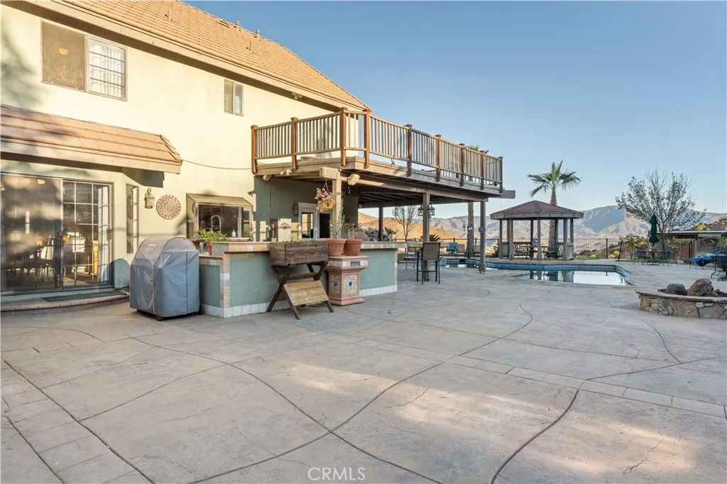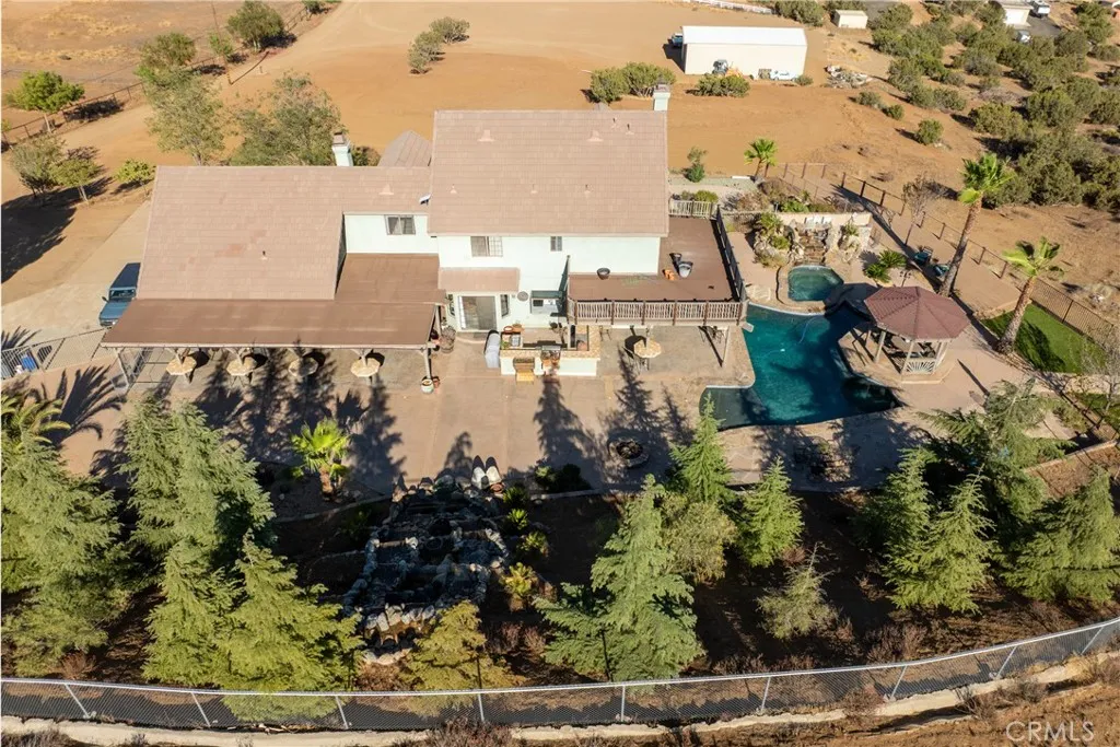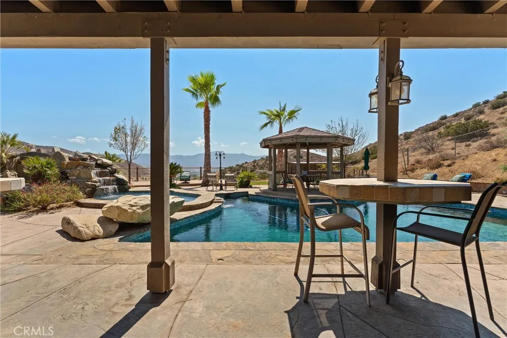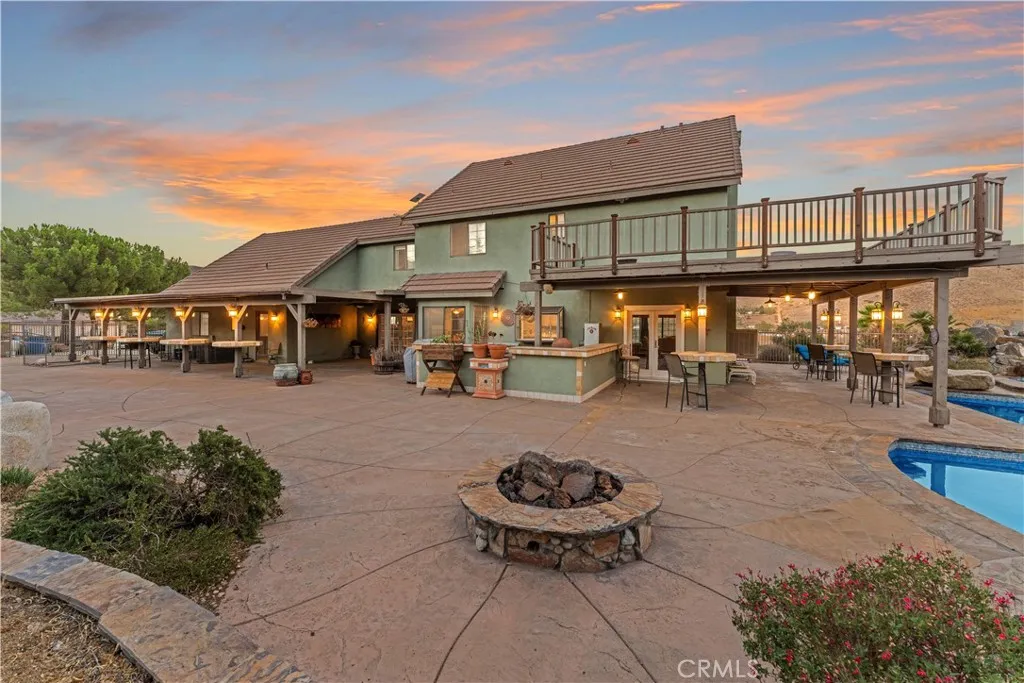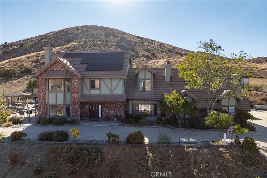 Over 5 acres of private grounds with 365 degree sweeping views of the golden California foothills. Safe and secluded, this elegant property can be your forever home, a private party location, or your equestrian estate. Located in upscale Acton, the elevated hillside terrain affords panoramic views with soft morning sunrises and stunning red sunsets. The 3194 s/f home features large picture widows and, during the day, sunbathed light in every room. With no streetlights nearby, you'll see the night sky filled with millions of stars and hear nothing but the peaceful quiet. Enjoy these breathtaking views with morning coffee or afternoon cocktails on the (12x60) deck overlooking Acton, or on the second-story wrap-around balcony! The professionally landscaped yard includes lush desert scape, mature pine trees, massive boulders, and a rock waterfall built into the hillside. These encircle a huge, finished outdoor area with heated pool, spa (seats 14 comfortable), custom built-in barbecue, and six built-in high-top tables for that elegant wedding reception, family reunion, or holiday event. The outdoor sound system and cozy fire pit will bring a warm ambience to the chilly evenings. The elegant cobblestone driveway welcomes you to the home's expansive front door and cozy wood beam and brick faade. Inside are formal and family living areas, five spacious bedrooms, four baths (large bed and full bath downstairs for guests), each of which include windows or doors that open to the magnificent views and office leads to the stunning wrap-around balcony. The newly renovated master ensuite