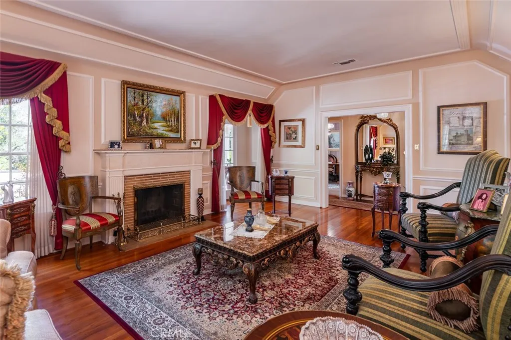 Welcome to an exceptional opportunity to own this remarkable Colonial-style residence in Glendale's prestigious Royal Boulevard neighborhood, a celebrated enclave known for its timeless architecture and storied charm. Nestled on a private, gated lot, surrounded by mature trees, this beautifully preserved residence exudes character and vintage appeal with classic architectural details, proportions and period charm, perfectly suited to today's discerning homebuyers. Set on a generous 22,000 sqft. lot with park-like grounds and sparkling pool offering complete privacy and seclusion with thoughtfully designed living spaces. Sweeping drive leads to a dramatic grand entry, welcoming you in an elegant living room, rich in historic character highlighted by a stately fireplace, soaring ceilings and period details that echo the craftsmanship of a bygone era. Formal dining room sets the tone for impressive entertaining with its enduring beauty. A private library/office, enhanced by its own fireplace, provides and inspiring retreat for work and study. Featuring 4 bedrooms, including two primary suites conveniently located - one on each level. Second floor gracious master features luxurious bathroom and provides an access to a large view balcony. The beautifully renovated kitchen showcases a grand center island, custom cabinetry, and a sunlit breakfast nook. The expansive lot offers incredible scope for indoor/outdoor living, whether hosting by the sparkling pool or enjoying estates serene garden spaces. Entertain in style with a dedicated pool lounge with professional bar, creating the