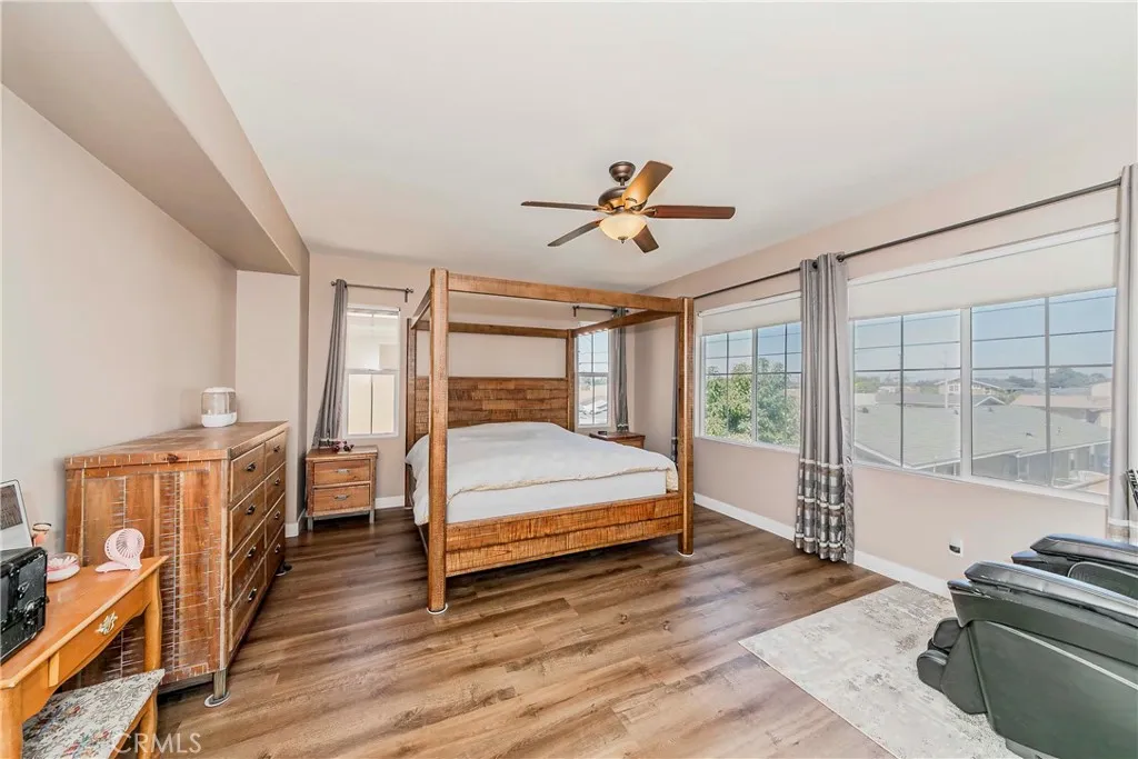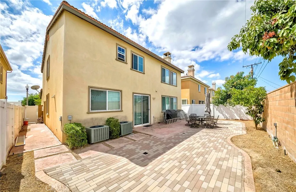 Welcome to the gated community of Laurel Gate! This beautiful single-family home features hardwood floors on the main level and a bright, open kitchen with granite countertops and stainless steel appliances overlooking the family room. The floor plan offers a convenient downstairs bedroom and full bath, plus three additional bedrooms upstairs. The spacious primary suite includes a luxurious bath with dual sinks, a separate shower, a soaking tub, and a walk-in closet. Upgrades include all bathrooms remodeled with quartz countertops in 2019, SPC waterproof flooring installed upstairs (including the stairs) in 2019, plantation shutters added in 2017, and artificial turf in the front yard along with backyard cement work completed in 2022. The home is also energy-efficient with 12 fully paid-off solar panels (4.23 kWp each). Community amenities include a pool, spa, and recreation area. Move-in ready with style, comfort, and efficiency in a desirable gated neighborhood!
