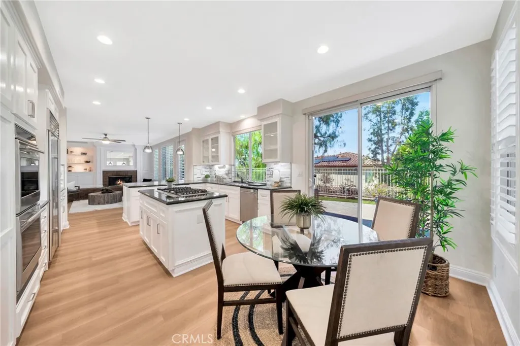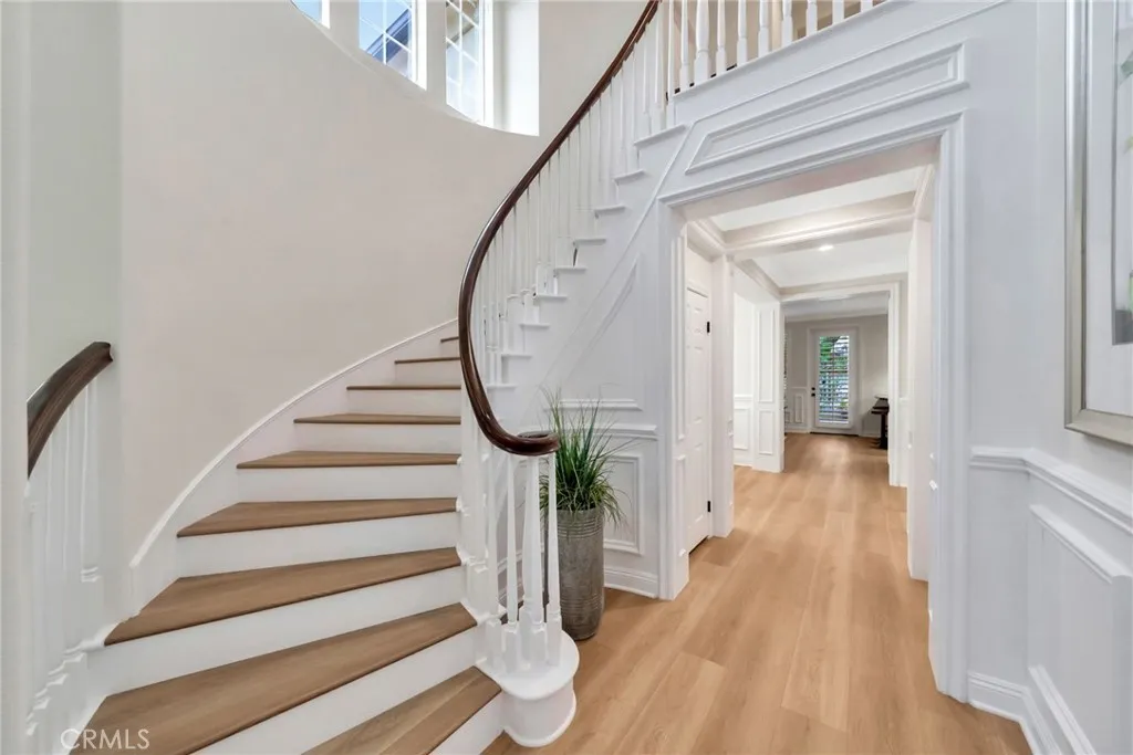 Welcome to 23171 Rockrose, an exquisitely reimagined home tucked away on a desirable single-loaded street in the guard-gated enclave of Stoneridge, Mission Viejo. Beyond its stunning curb appeal, this residence offers exclusive Lake Mission Viejo privileges from boating and fishing to private sandy beaches. Inside, soaring ceilings set the stage for a home that feels both grand and inviting. Nearly every corner has been refreshed with brand-new upgrades: new PEX plumbing, new lighting, new flooring, new luxurious interior paint, a new HVAC system, new epoxy-finished garage floors, and a new hot water tank. Plantation shutters and custom millwork including wainscoting, archways, and crown molding bring warmth and timeless elegance. The gourmet kitchen is a showstopper, outfitted with granite countertops, a spacious breakfast bar, and premium appliances: built-in SUB-ZERO refrigerator, WOLF double oven, and a new WOLF island range. Upstairs, the expansive primary suite is a private retreat, featuring a spa-inspired bath with travertine stone and designer finishes. Each additional bathroom has also been thoughtfully updated with custom mirrors and curated details. Outdoors, enjoy low-maintenance beauty with lush artificial turf, custom pavers, and stacked-stone planter boxes. A whole-house fan keeps the home energy efficient, while the 3-car tandem garage offers generous storage. With no neighbors directly across the street, top-rated schools nearby, shopping, dining, golf, La Paws Dog Park, the Nadadores Swim Facility, low HOA dues, and no Mello Roos, this home delivers th