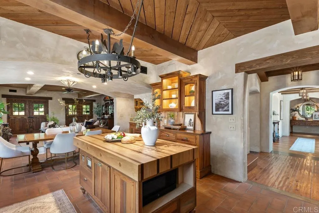 A landmark estate on the highly coveted Santa Clara Avenue in the heart of Dana Points iconic Lantern District, this Italian-inspired villa is a true masterpiece. Designed by Giovanni Miscione and inspired by the coastal charm of the village of Agnone, Italy, Villa della Famiglia captures the essence of old-world character while embracing the luxuries of modern living. Every detail has a story to tell. The rugged stone exterior, handcrafted ironwork, and rich wood accents give the home a sense of permanence and soul. Step through the towering entrance and youre met with soaring ceilings and dramatic lighting that set the tone for a home that transcends trends and endures through generations. At its heart, the gourmet kitchen is designed for both elegance and utility. A grand island and farmhouse sink anchor the space, while a professional-grade Wolf gas range and Sub-Zero refrigerator make entertaining effortless. The kitchen flows seamlessly into the formal dining area and family gathering space, where a cozy fireplace invites conversation and connection. Two primary ensuites on the main level offer comfort and privacy, each with walk-in closets. One includes a roll-in shower for easy accessibility, and the other opens directly to the patio for seamless indoor-outdoor living. Upstairs, two spacious bedrooms each enjoy private balconies that catch the ocean breeze, while a versatile bonus room can flex to your lifestyle - a home office, media lounge, or quiet retreat. Outside, the home feels like its own private sanctuary. Gather around the stone fireplace for alfresco dinn