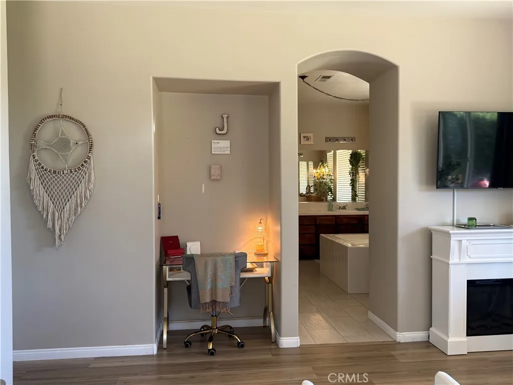 Welcome to this Stunning Home located on an Elevated Corner Lot with Views! In... the Highly desirable Gated Community of Tuscany! Offering: 3 bedrooms & 2.5 baths, SOLAR, 3 car garage PLUS a Tiny Home! The beautiful Courtyard entry leads inside to an Elegant Foyer boasting a Formal Living and Dining Room adorned with a beautiful Chandelier. Huge Windows bring in tons of Natural Light & offer Views of the Sierra Nevadas.to the East. Just off to your right is a Bonus Room/Office/4th Bedroom with beautiful new Barn doors for privacy. The combination of Newly installed Luxury Vinyl planking adds a warm touch throughout the home as does the larger Ceramic tile. An Entertainer's Dream best describes the Kitchen with rich dark Hardwood Kitchen Cabinets with Soft Close Doors and Stainless Steel Appliances. Beautiful Granite slabs highlight the large Center Island and Countertops with an all-natural Stone Backsplash. The Kitchen flows into an open Concept Family Room allowing plenty of space for Guests, Conversation, Food and Beverage while gathering around the Fireplace! The Spacious Master Bedroom En suite offers views to the West & Sunsets & Plenty of Windows. You will enjoy the Master Spa-like Bathroom drawing you in to partake of the Elegant Soaking tub surrounded by separate His & Her vanities and Shower. Step outside and you will find your Backyard Oasis with a large covered Patio running the full length of the Home. This makes for a Great Bar-B-Q location, favorite Breakfast spot, Outdoor Entertaining or Romantic Dinners watching the Stunning Sunsets! There is also a "Venue