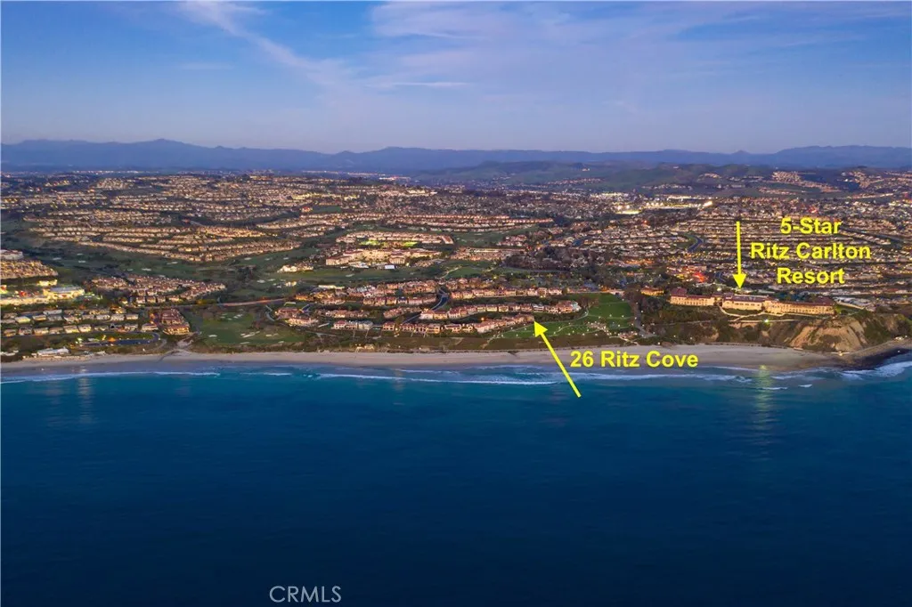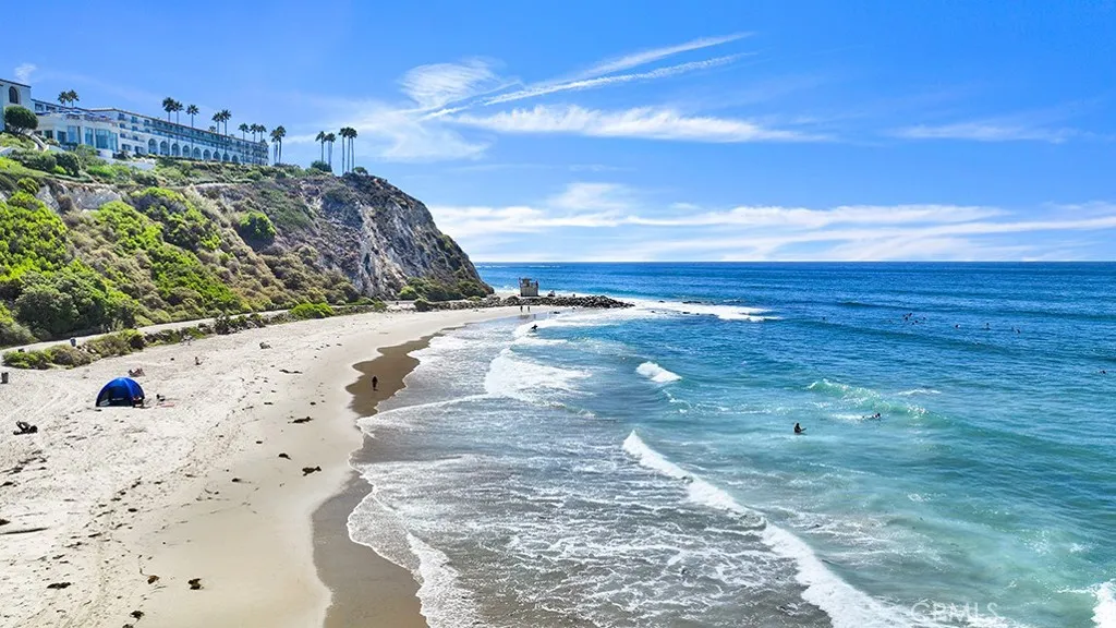 Two thirds of an acre on the FRONT ROW OCEANFRONT ONE OF A KIND IN RITZ COVE! Welcome to an elegant oceanfront estate in Ritz Cove, the only beachfront community between the Ritz-Carlton and the Waldorf Astoria Monarch Beach Five-Star Resorts. Positioned on the largest lot in the enclaveover two-thirds of an acrethis home enjoys an extraordinary 110 feet of ocean and Catalina facing frontage and the privacy of a double-lot width. There is no neighbor on one side, just garden, grass and a sitting area...so the feeling of privacy is immense. With approximately 8,300 square feet, 5 bedrooms, and 9 baths, this residence was designed for rare coastal living. The subterranean garage accommodates up to six cars, a true luxury along the coast, and a rarity for an oceanfront home. An elevator serves all three levelsa distinction, as homes in many areas of OC are restricted to only two stop elevator service. Additionally, one of the bedroom suites has its own private exterior entrance, which is ideal for a guest apartment, ADU, or quarters for a nanny, chef, live-in family member or caregiver. The ceilings in this separate room are over 11 high. The lower level family room can easily serve as a large Media/Cinema Room/Movie Theatre! A private cul-de-sac setting and a 90-foot setback from the street creates serenity and exclusivity. The lush garden, with roses, peaches, lemons, limes, boysenberries, Fuji apples, palms, and grapes, offers a rare oasis by the sea. Step through your private beach gate and onto the world-renowned Salt Creek Beach path, steps from white sand, dolphins, su