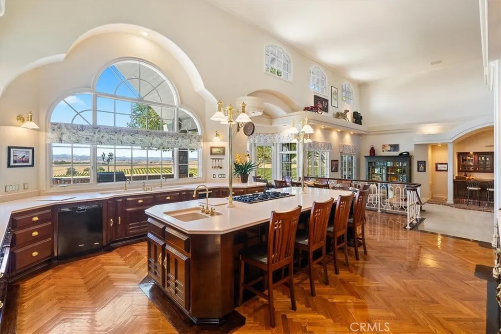 Welcome to a truly one-of-a-kind residence, where vision and craftsmanship come together in perfect harmony. Thoughtfully designed and meticulously built by the seller, this extraordinary estate is as much a masterpiece as it is a home. Located in the desirable Pleasant Valley area, it offers the serenity youre looking for amidst expansive neighboring vineyards, wineries, orchards, and grazing land. From the moment you arrive at the gated entrance and wind your way up the tree-lined concrete driveway, youll be struck by a sense of timeless elegance. Set on 52 acres with sprawling lawns, 360-degree views, and a beautifully maintained 40-acre vineyard of premium Merlot, the property offers both grandeur and agricultural distinction. The 6,800 sq. ft. home is a showcase of design and detail. At its heart, the living, dining, kitchen, and family rooms soar with two-story ceilings and clerestory windows that bathe the interiors in natural light while framing sweeping vineyard and countryside views. Entertaining is effortless with a sunken formal living room, an open family room complete with wet bar, a stunning gourmet island kitchen with expansive walk-in pantry and multiple dining areas, and extensive concrete patios with outdoor BBQ island. Two dramatic fireplaces anchor the main living spaces, while private retreats abound with 5 bedrooms, 4.5 baths, office/library/den, and a dedicated laundry and sewing room. The elegant and spacious primary suite is like no other, complete with fireplace, sitting area, two walk-in closets, separate vanities, tub, and an impressive walk-in