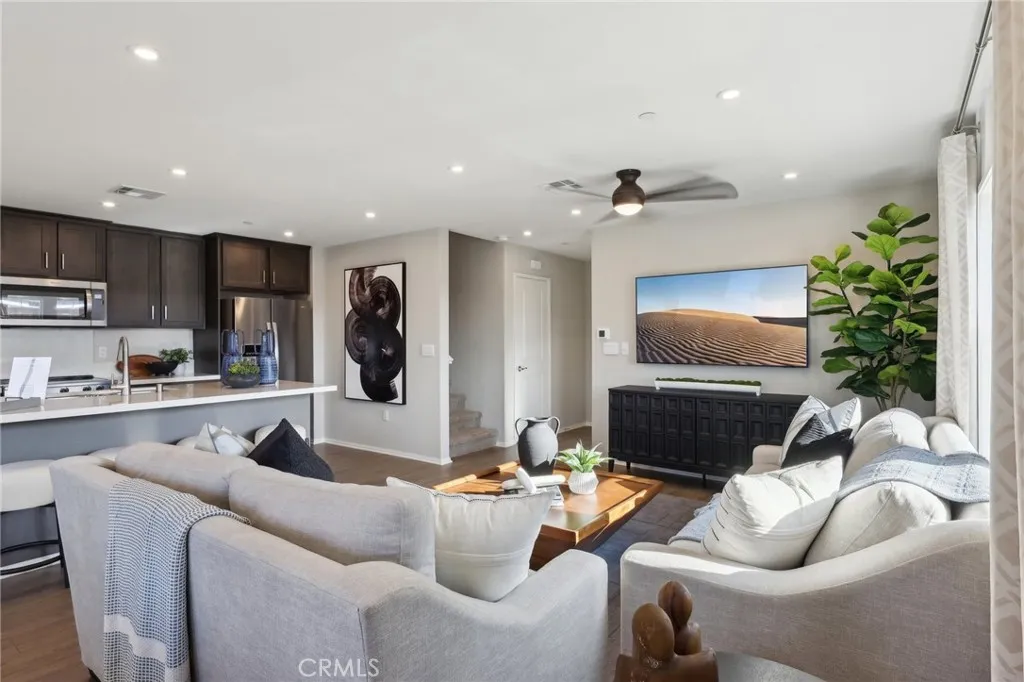 NEW CONSTRUCTION - NEW COMMUNITY! Welcome to Dahlia at Sierra Vista, a brand-new townhome community located in a gated community in the city of Fontana, featuring a community pool and play lot. Dahlia at Sierra Vista offers two-story townhomes ranging from 1,584 to 1,705 sq. ft. with up to 4 bedrooms and 2.5 bathrooms. This Residence 1705 plan features 4 Bedrooms and 2.5 Baths, a spacious open-concept Great Room, Kitchen and Dining Area designed for gathering and perfect for entertaining friends and family. The gourmet Kitchen offers stainless-steel appliances including cooktop, dishwasher, and microwave/hood and quartz kitchen countertops. The second level features a thoughtfully-designed layout, offering spacious secondary bedrooms and Primary Bedroom, convenient laundry room and bathrooms with dual sink vanities. Among the features and finishes, homeowners will appreciate the unparalleled peace of mind in owning Americas Smart Home, Home is Connected. The Home is Connected package offers devices conveniently controlled though one application to stay connected to home around the clock.