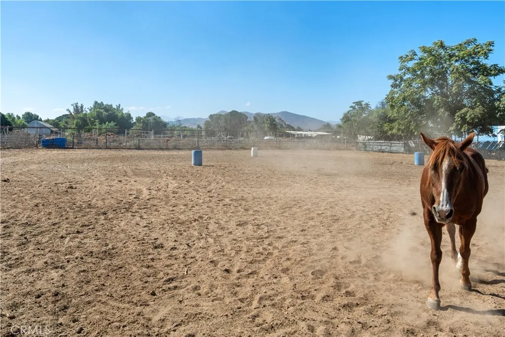 ***AMAIZING OPPORTUNITY TO OWN THIS BEAUTIFUL EQUESTRIAN PROPERTY *** This gem boasts 1.91 acres of flat, usable land. It features a seven-horse barn with covered space for tack and storage , 11 additional stalls out back, plus 3 larger stalls at the front of the property for a total of 21 stalls, arena, round pen, turnouts, horse walker and wash area. The property is fully fenced and features an automatic gate with a combination lock for added access and safety. It is also well-equipped with plenty of parking space for RVs, trucks, trailers, haulers and for all your toys. The main residence is a comfortable 936 sq. ft., and it offers a living room, plus two bedrooms and one bath downstairs and family room, plus kitchen and one bath upstairs. Additional living space include a modest detached studio with a kitchenet. The interior of this home has been painted with beautiful neutral colors, and it offers many upgrades including ceiling fans throughout, gorgeous kitchen and bathroom cabinets, stylish laminate wood flooring upstairs and in the bedrooms, plus tile downstairs. This unique ranch offers outstanding equestrian facilities, comfortable living, privacy, and potential for expansion all in one package, and to top it off, it is conveniently located just minutes from schools, shopping, SiverLakes Equestrian and Sports park, Interstate 15, and 60 freeway. Call us today for more details!