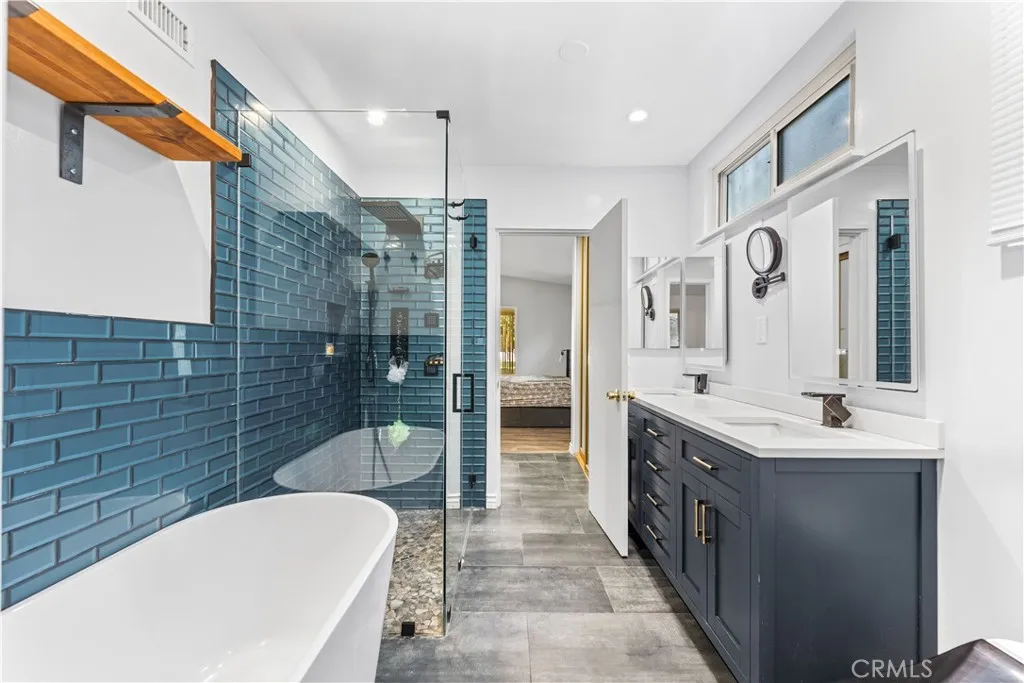 Welcome to 23151 Bigler Street, a beautifully updated single story retreat nestled in the heart of Woodland Hills, south of the Boulevard. This inviting home offers timeless charm and modern comfort across nearly 2,300 square feet of living space, all set on a private, gated 8,441 square foot lot. Inside, youll find three spacious bedrooms and two bathrooms, complemented by new laminate flooring, fresh interior paint, and a bright, airy living room with vaulted ceilings, skylights, and a cozy fireplace. The kitchen seamlessly flows into a comfortable family room, making it perfect for entertaining or relaxing with loved ones. A versatile bonus room with Spanish tile flooring and walls of windows offers the ideal space for a home office, art studio, or playroom. One of the bedrooms features a Jack & Jill layout that connects to both an office and a nursery, catering to todays flexible lifestyle needs. Step outside into a tranquil backyard oasis, where a large sun deck, sparkling pool and spa, and lush greenery provide the perfect escape. A rooftop deck overlooks the grounds, offering an elevated space for outdoor enjoyment. The garage has been converted into a studio, presenting an excellent opportunity for extra income or guest accommodations. With some light touch-ups and personal finishes, this home has the potential to truly shine and become one of the best in the neighborhood. Located just minutes from Ventura Boulevard, the 101 Freeway, and premier local shopping and dining, this home also falls within the highly regarded Calabash Elementary, Hale Charter Middle, and E