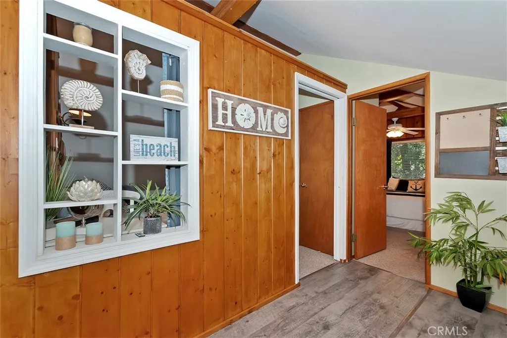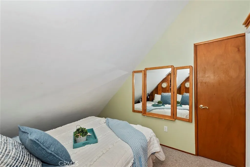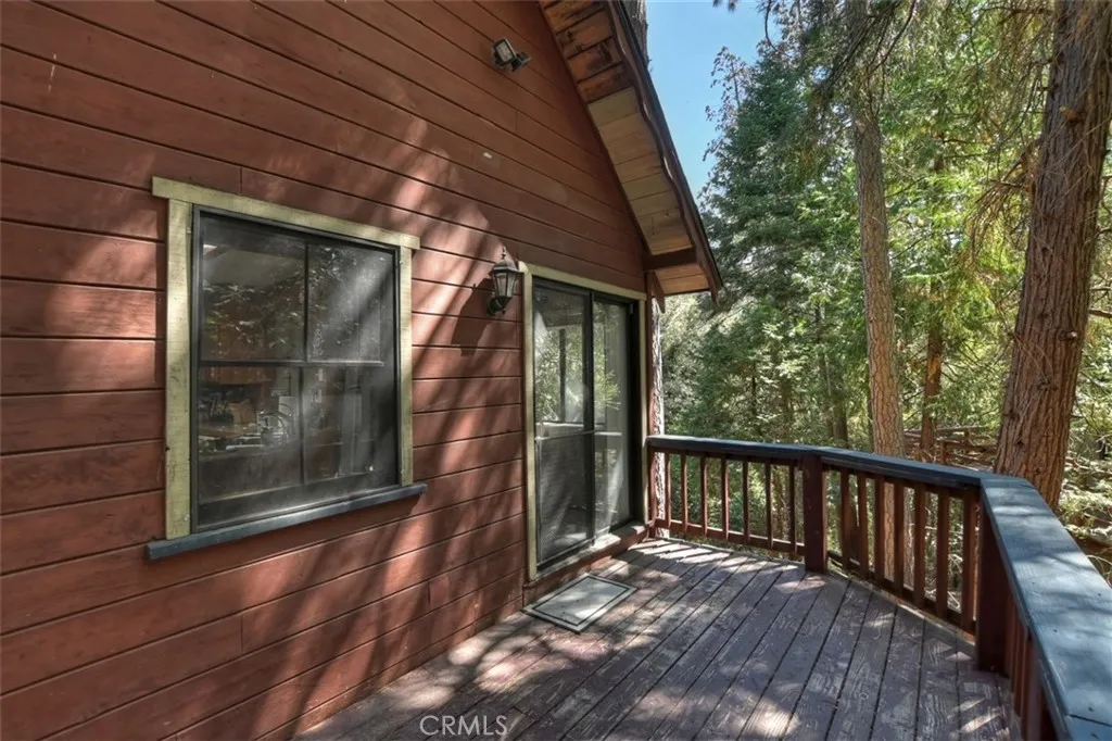Charming cabin in the woods. This vintage cabin features 2 bedrooms plus a loft and 1.5 baths on a gently sloping lot in a great San Moritz neighborhood. The main level features a comfortable living room with original wood burning fireplace, tongue and groove paneling, wood beamed ceiling and updated flooring. Good sized kitchen with dishwasher, gas stove, breakfast bar and cozy dining area with slider out to the side deck. A full bathroom and separate laundry room complete the main level. Up the charming wood staircase you will find the secondary bedroom, loft and large primary bedroom with ensuite half bath. You can't beat the location and charm of this vintage cabin. Schedule your private showing today!