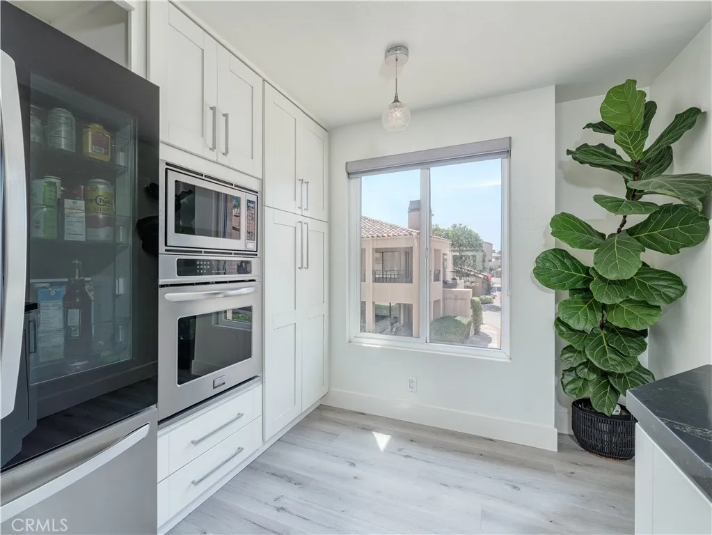 This exquisite 2-bedroom, 2.5-bathroom condo is nestled in the picturesque Broadmoor Huntington Harbour, a rare gem of a waterfront community just a short stroll from the pristine ocean and the serene beaches along the bay. The residence showcases a wealth of upscale upgrades, featuring stunning vinyl plank flooring that flows seamlessly throughout the space, complemented by remodeled bathrooms adorned with solar tubing, elegant vanities, and contemporary fixtures. With its soaring cathedral ceilings, the condo is bathed in natural light, creating an inviting and airy atmosphere. The kitchen is a true culinary delight, boasting expansive quartz countertops, premium cabinetry, and a sleek stainless steel oven alongside a gas stovetop, perfect for the aspiring chef. Enjoy your morning coffee or a quick bite in the charming breakfast nook, which provides a cozy spot to savor meals. The kitchen effortlessly transitions into the dining area and a spacious living room, which invites you to unwind and enjoy the ambiance. Sliding doors lead to one of two balconies, where you can revel in delightful peek-a-boo views of the harbor. On the main floor, you'll discover a convenient powder room and a well-appointed full-size laundry room, enhancing the functionality of the space. Ascend to the upper level, where the dual master suites offer the ultimate in privacy and comfort. The primary suite is a retreat, featuring two expansive closets and its own private balcony that showcases glimpses of the harbor and ocean. The primary bathroom is a spa-like sanctuary, complete with an additional
