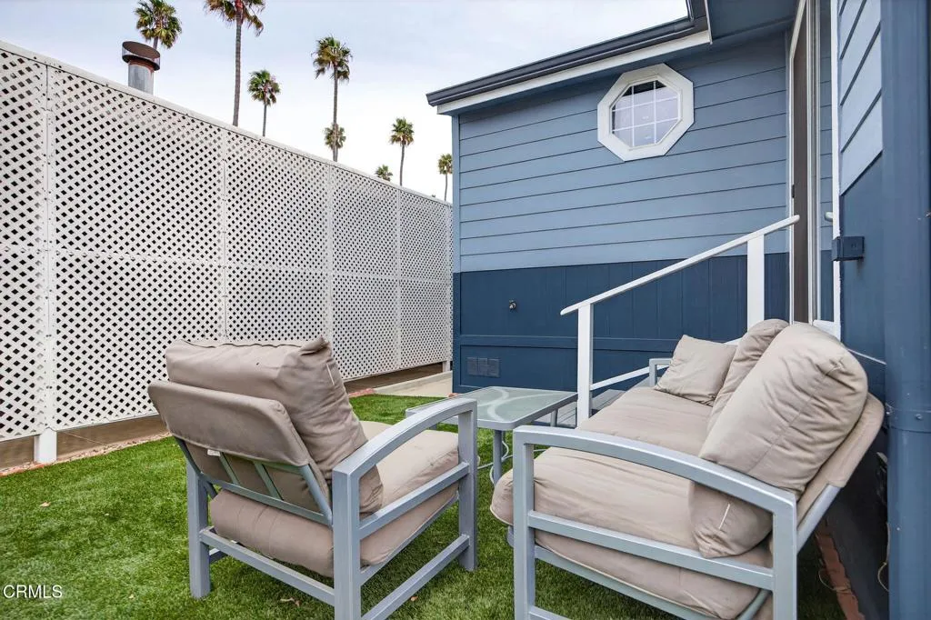 WOW!! Coastal living at it's finest. Situated on a quiet, corner near the back of one of Ventura's most desirable 55+ communities adjacent to the Ventura Harbor, this home is a gorgeous retreat and has it all. The current owner has recently spared no expense and has meticulously updated and thoughtfully curated this spacious and bright home. Welcoming you home is the serene front porch, situated on a corner, looking towards the hillside, where you will view palm tree skies and glorious sunsets. Once inside, enjoy the light filled, spacious rooms with high, vaulted ceilings, lots of windows. Centered around a beautiful gas fireplace is the living area which flows nicely into the formal dining area and kitchen. The bright and open kitchen features an extended custom island with seating, additional recessed lighting, skylights, newer appliances and a cozy breakfast area perfect for everyday living and entertaining. The primary bedroom, bathroom and closets are more than generous in size and invite relaxation. There is a bonus room off a newly expanded hallway that is currently used as an additional guest room which also has access to the peaceful yard. The additional guest bedroom and bath are also nicely sized. Numerous, recent upgrades include luxury vinyl plank flooring throughout, new light fixtures, custom window coverings, ceiling fans, canned lighting in the living room and kitchen, an instant hot water heater and painting both inside and out. The roof has recently been replaced and two solar tubes were added as well as rain gutters. Enjoy the outdoor spaces that are am