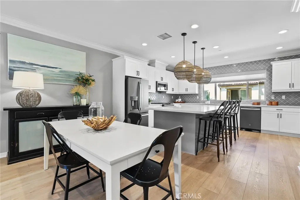 WOW! Discover the Many Details and Stunning Upgrades complimenting this Modern 2021 Built SPACIOUS 2,402 SQFT Townhome. Located in the GATED Resort-Style Community of Ironridge on a PRIVATE PREMIUM LOT, and featuring 4 BEDROOMS + 3.5 BATHROOMS & 2 LAUNDRY ROOMS this Stylish Residence has EVERYTHING FOR THE MODERN DAY BUYER! A Light & Bright interior with Soaring Ceilings greets you upon entry to provide the perfect ambiance for your daily routine. The Highly Desirable Spacious DOWNSTAIRS FULL BEDROOM SUITE features Pre-Plumbed utilities for a Kitchenette, a spacious Full Bathroom, Living Room and its own Laundry Room! Designer Paint, Crown Molding, Decorative Trim, Wainscoting, Custom Rollershade Window Coverings and LUXURY VINYL FLOORING THROUGHOUT THE ENTIRE HOME continues to set the tone for this Gorgeous Upgraded Residence. Upstairs you will find the heart of the home with the LUXURIOUS SPACIOUS KITCHEN featuring Neutral Quartz Countertops, Huge Center Island, Stainless Steel Appliances, Crisp White Cabinets, Designer Tile Backsplash, Convenient Coffee Bar, Charming Bay Window, and Designer Pendant Lighting. The comforts of an Open Concept Living Room are highlighted with High Ceiling, an abundance of natural light, Beautiful Covered Balcony and Custom 74" Fireplace Electric Fireplace creating your very own at home sanctuary. Upstairs you will find an 3 Additional Bedrooms, Including the Primary Suite and Spacious Laundry Room. Indulge within the Comforts of a Calm Atmosphere in your Primary Suite Retreat offering plenty of Space and Natural Light throughout. Continue i