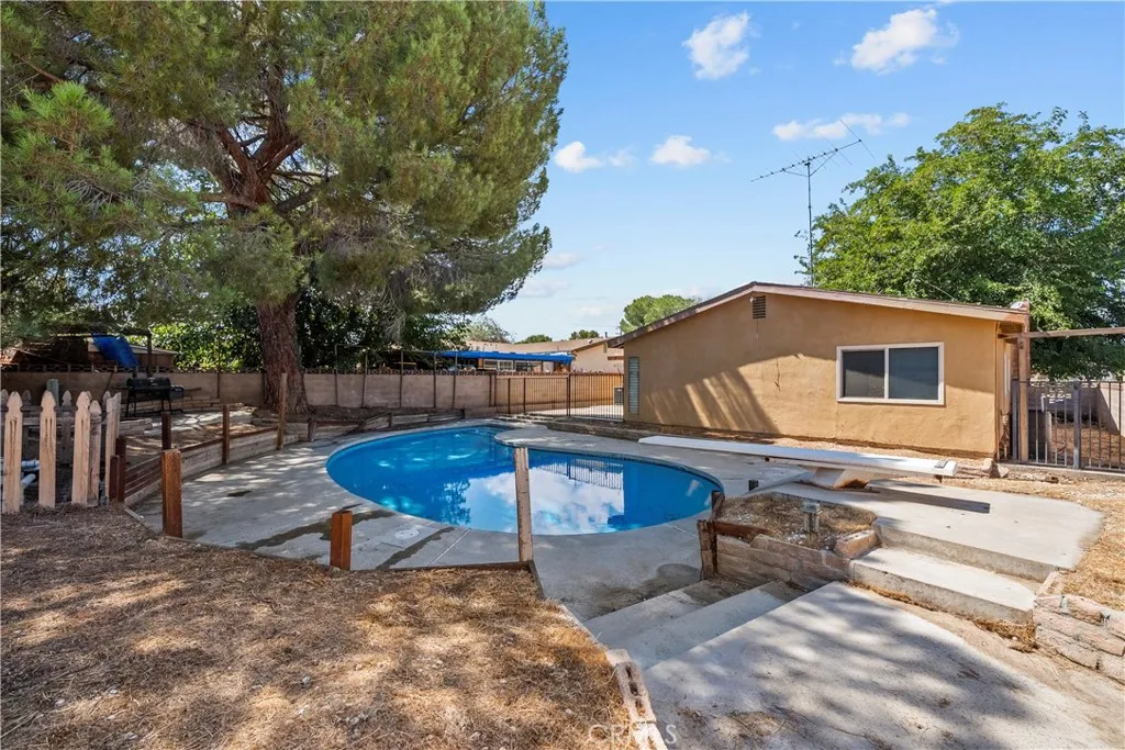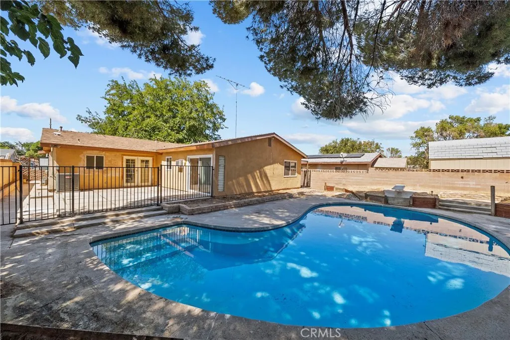 Welcome to 44408 Denmore Avenue! This inviting 4-bedroom, 2-bath single story pool home combines comfort, style, and an ideal layout for everyday living. Step inside to find hardwood and tile flooring throughout the main living areas, complemented by brand new carpet in the bedrooms. The spacious living room features a cozy wood-burning fireplace and plenty of natural light through dual-paned windows. The kitchen is designed for both function and flair with granite countertops, stainless steel appliances, and an open flow into the dining and family spaces perfect for entertaining. The primary bathroom bathroom has been beautifully updated, while the additional bedrooms provide flexibility for family, guests, or a home office. Enjoy warm California days in your generous backyard, complete with a sparkling pool, patio space, and room to host gatherings. Additional upgrades include a newer AC condenser, furnace, and water heater for peace of mind. With its open floorplan, desirable features, and a great outdoor space, this home is ready to shine with your personal touch. NO HOA, NO MELLO ROOS!
