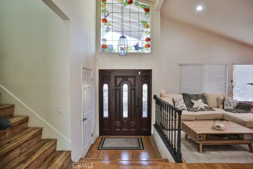 This stunning two-story home features 4 spacious bedrooms and 3 full bathrooms, including a highly desirable main-level bedroom and bathperfect for overnight guests or a private home office. The double entry doors open to a high-ceiling foyer with soaring ceilings, leading into a bright and expansive living and dining area, ideal for hosting gatherings. The gourmet kitchen has been updated with sleek gray quartz countertops, modern shaker cabinets with soft-close drawers, and brand-new appliances, making it a chef's dream. It opens seamlessly to a welcoming family room, featuring a decorative fireplace, a built-in bar, and a wall of panoramic sliding patio doors that frame a beautiful view of the backyard. Upstairs, the expansive master suite features two mirrored closets, a private en-suite with walk-in shower, and direct access to an enormous private balconya serene spot to relax and enjoy the hillside views. Additional highlights include durable hard-surface flooring throughout, recessed lighting, dual-pane windows, and a host of upgrades such as a new HVAC system with furnace, updated attic ducting, a stylish front entry door, and all-new electrical outlets and solar to reduce monthly utility bills. The backyard retreat is private and inviting, backing to open hillside with no neighbors behind. With multiple lawn areas, theres ample room for entertaining, barbecues, play, or even the possibility of adding a pool. Located just minutes from top-rated schools, shopping, dining, the Mission Viejo Library, and miles of scenic trails, this home also includes membership to the