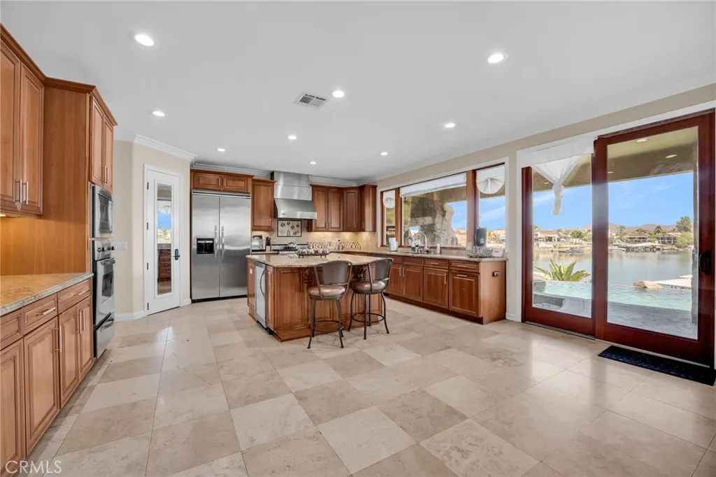 Welcome to 30420 Longhorn Drive, a stunning east-facing waterfront masterpiece located in the prestigious guard-gated community of Canyon Lake, CA. Perfectly positioned on the serene waters of Catfish Cove, this residence offers refined lakefront living with breathtaking panoramic views, exceptional design, and world-class amenities. Spanning an impressive 3,811 sq ft on a 6,098 sq ft lot, this home features a grand open floor plan adorned with soaring ceilings, travertine flooring, and designer finishes. The gourmet kitchen is a chefs dream, complete with a large center island, Viking appliances, wine cooler, and spacious walk-in pantrya perfect balance of function and elegance. The luxurious master suite is a true private retreat, offering sweeping lake views, a cozy sitting area, private patio, in-suite fireplace, dual walk-in closets, and a spa-like ensuite with jacuzzi tub and oversized glass shower. Outdoor Living at Its Finest-The resort-style backyard is an entertainers paradise, featuring an infinity-edge pool and spa with cascading waterfalls, multiple seating areas, and a private patio with built-in entertainment center. Enjoy a sandy beach area, large palapa, fire pit, and a covered u-dock with hydro liftideal for boating, paddleboarding, or simply soaking in the lakefront tranquility. From the moment the sun rises over the water to the peaceful glow of evening, this property offers front-row views of majestic water and mountain vistas, fostering a daily sense of serenity and elevation. Designed for both grand entertaining and intimate moments, it seamlessly ble