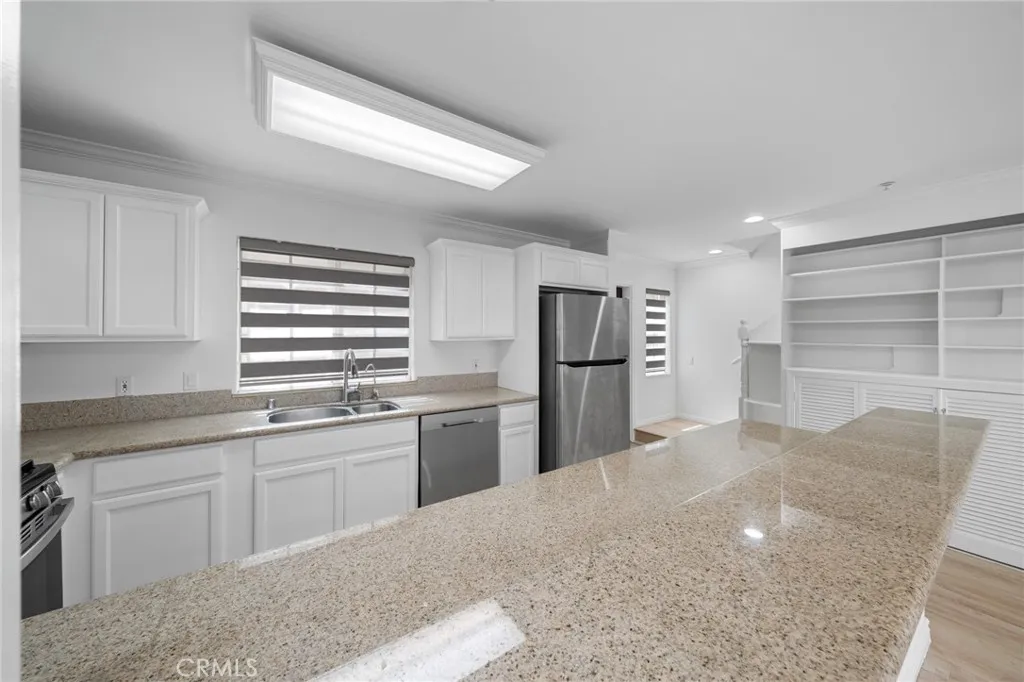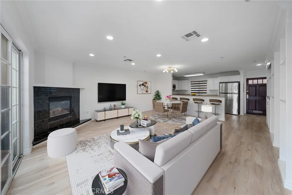 Welcome to 1133 S Hoover St #102, a bright and inviting two-story townhouse-style condo in a gated community. The open layout on the main floor features a spacious living area with a cozy fireplace, built-in shelves and cabinets, recessed lighting, and a powder room for guests. A modern kitchen with granite countertops makes cooking and entertaining easy. Upstairs, youll find two private primary suites, each with its own bathroom and walk-in closet. Natural light pours in through a dramatic skylight, giving the home a warm and airy feel. Additional perks include central heat and air, in-unit laundry, and two tandem and gated parking spaces. In the building, you'll find a communal grassy area for pets, a meeting room, and shared bike storage. With close access to Downtown LA, Ktown, Hollywood, USC, and nearby shops and restaurants, this home blends style and location in one of LAs most convenient neighborhoods. This property qualifies for up to $20,000 in a grant from City National Bank!