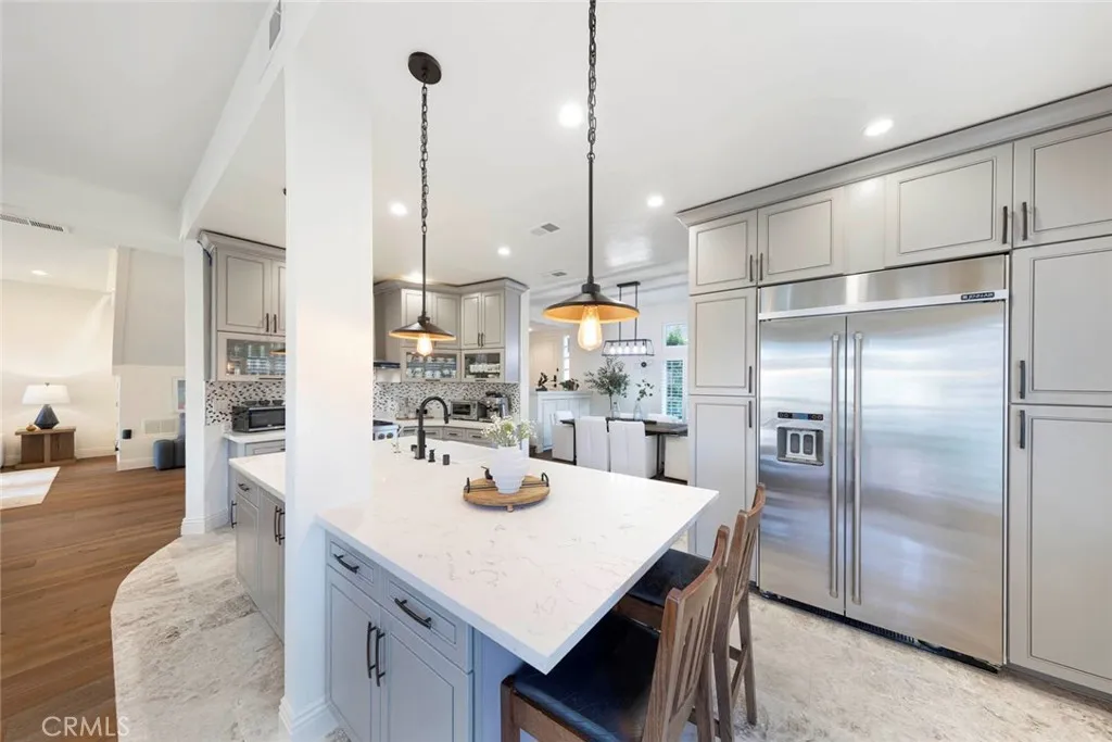 Experience resort-style luxury in this beautifully renovated home, perfectly situated within the prestigious guard-gated community in Newport Beach. Designed with a seamless blend of sophistication and comfort, the residence showcases quality craftsmanship, and thoughtful upgrades throughout. A luminous entry welcomes you to an open floor plan with soaring ceilings and a skylight. The main level features a guest bedroom with full bath, formal living and dining roomsboth with elegant marble fireplacesa spacious family room, and a versatile loft. French doors open to a view deck, ideal for indoor-outdoor entertaining. The gourmet kitchen is a chefs dream with custom cabinetry, a quartz-topped island, breakfast bar, and premium stainless-steel appliances. Upstairs, the primary suite offers vaulted ceilings, panoramic city-light and treetop views, a cozy sitting area with fireplace, a spa-inspired marble bath with freestanding tub, and a generous walk-in closet. Additional highlights include new wood and marble flooring, custom built-ins, quartz counters in all bathrooms, central air conditioning, and a three-car garage with epoxy flooring and long driveway for added parking. Residents of Harbor Ridge enjoy four pools and spas, three tennis courts, 24-hour gate-guard security with patrol. The community is just minutes from world-class shopping and dining, top-rated schools, Pelican Hill Resort and Golf Course, and the most beautiful beaches in Orange County. This extraordinary home embodies the very best of coastal living in Newport Beach.