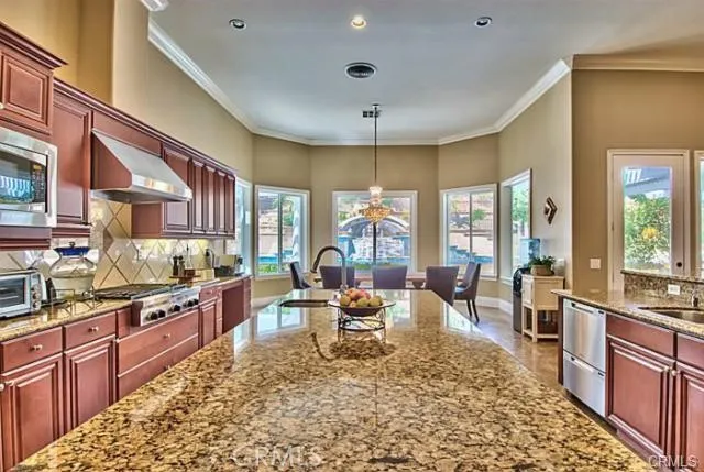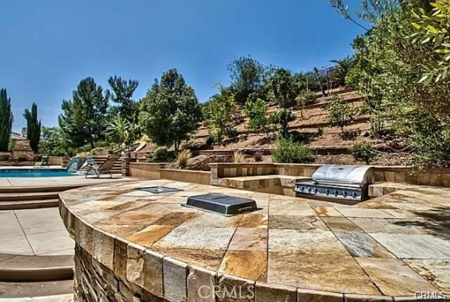 Gorgeous Tuscan Style Amber hill Estate home is located above the beautiful of South Corona. SOLAR-Powered, This prestigious home features 5 Bedrooms & 4.2 Bathrooms & 4 car garage. The front entry welcomes you into a courtyard like setting & features a 2 tier water fountain with a iron gate front entry. Upon entering the home your eyes are drawn to the high ceilings & columns that surround the entries foyer. Crown molding and trey vaulted ceilings throughout the entire home. Retreat Master bedroom w/fireplace. Stunning formal living room and dining room, custom fireplace, wood flooring, w/ travertine accents, Ventilations Cooling system. Open concept cookers kitchen/ dining room/ family room/ game room/ & bar has a full view of the backyard & is perfect for entertaining. Kitchen has all stainless steel appliances, double ovens, stove top w/grill, double dishwashers, sub zero refrigerator, granite counter tops, oversized center island w/prep sink, pantry, w/elegant back splash. Family room has a gorgeous rustic built-in entertainment/bookcase unit & fireplace. Separate grand office room w/French doors. Breathtaking backyard with a Salt water pool, waterfall, and in ground spa. Newer Water softer, Two car charges ( one inside garage & one outside in drive way). Large covered private patio with fire pit, fireplace, BBQ & sitting area. This luxurious home is a must see!