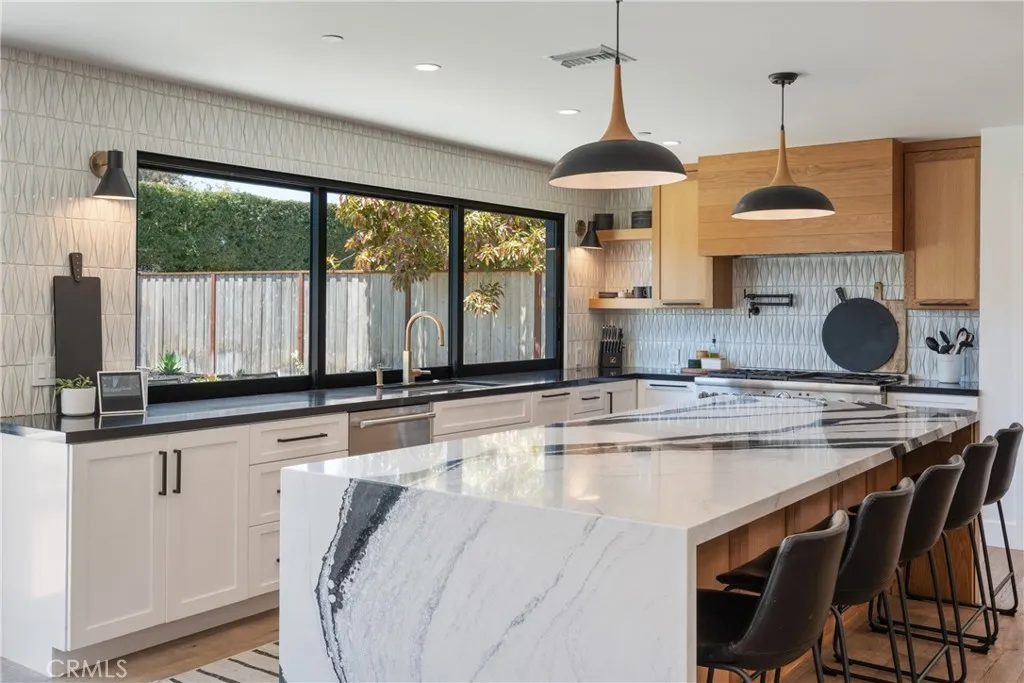 Set in the heart of Newport Beach's coveted Dover Shores, 1235 Santiago Drive designed by Architect Benjamin John Stevens offers the perfect blend of luxury, functionality, and coastal charm. Fully remodeled in 2022, this expansive 7-bedroom, 5 1/2-bathroom residence spans approximately 4,600 square feet and boasts thoughtful upgrades throughout-including a new roof, plumbing, electrical, HVAC, dual water heaters, and electrical panels. Enjoy seamless indoor-outdoor living in a spacious open-concept layout with a chef's dream kitchen featuring a 10-foot island, high-end appliances, and custom finishes. Multiple living areas, a children's loft/playroom, and a dedicated office make this home as versatile as it is elegant. The large backyard intentionally curated by Architect Mike Parker is ideal for entertaining, while the rooftop deck delivers sweeping ocean and bay views-perfect for sunset gatherings. With three bedrooms and bathrooms conveniently located on the main floor, multigenerational living or hosting guests is a breeze. The primary suite offers a cozy fireplace and a luxurious retreat. Additional highlights include two laundry rooms, a 3-car garage with extra storage, central air and heat, and an electric car charging station. Located within walking distance to top-rated schools, scenic parks, the shops and dining on 17th Street, and the popular Castaways trail, this home sits in one of the most walkable and family-friendly neighborhoods in Newport Beach. Welcome to coastal living at its finest.