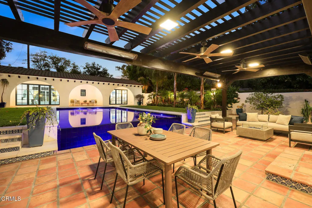 Stunning Renovated Spanish-Style Retreat with Luxe Features & Detached ADU. Welcome to this beautifully remodeled Spanish-style residence that perfectly blends timeless architectural charm with modern luxury. Situated in a serene and sought-after neighborhood, this captivating 4-bedroom, 2-bathroom home boasts refined details and exceptional craftsmanship throughout. Step through the formal arched entryway into a grand interior highlighted by soaring ceilings, rich hardwood floors, and elegant arched passageways that guide you through the thoughtfully designed living spaces. The inviting living room features a cozy fireplace, custom built-in bookshelf and dual arched windows, perfect for intimate gatherings or quiet evenings at home. The gourmet kitchen is a chef's dream, showcasing stainless steel built-in appliances, a generous center island with a second sink, two dishwashers, an abundance of counter space and open to the family room ideal for effortless entertaining and everyday living. Retreat to the spacious bedrooms for rest and relaxation, while the spa-inspired bathrooms offer a touch of luxury with upscale finishes. Step outside to your private oasis--a pergola-covered Spanish tile patio leads to a breathtaking pool and spa adorned with elegant water features. Whether lounging by the water or dining al fresco, the outdoor space is designed for year-round enjoyment. Adding even more value and versatility, the detached ADU spanning over 1,000 square feet, offers a covered patio and is ideal as a guest suite, home office or gym. This exceptional home effortlessly com
