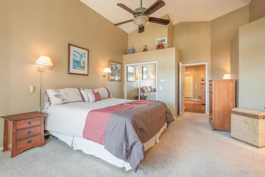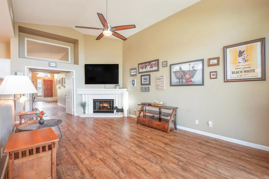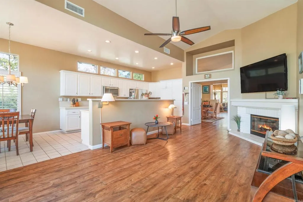 Discover a rare gem in Vineyard Estates, one of South Escondidos most desirable neighborhoods. This SINGLE-STORY home offers a spacious open floor plan with vaulted ceilings throughout the house, abundant natural light from skylight windows. Cozy fireplaces in both the living room and kitchen create inviting spaces for gatherings, while classic wooden shutters add timeless charm.A dedicated laundry room with built-in sink adds everyday convenience. The spacious 2.5-car garage offers ample parking and abundant storageperfect for keeping all your extras neatly organized. Step outside to your private backyard retreat, complete with an aluminum pergola, where you can take in mountain silhouettes, breathtaking sunsets, and enjoy a glass of wine from the nearby wineries. Recent upgrades include a new water heater, new AC with Nest thermostat, vinyl flooring in common areas (2020), aluminum pergola, and roof underlayment replacement (2018). The meticulously landscaped grounds complete this beautiful home. The home also features high-end appliances: GE 5-burner stove, Bosch dishwasher, LG double-door refrigerator. The spacious 2.5 half car garage has plenty of storage to organize the extra belonginns Enjoy the best of Escondido living with top attractions just minutes away: the San Diego Zoo Safari Park, Kit Carson Park, endless hiking and biking trails, local wineries, and nearby golf courses. Conveniently close to freeways, shops, and restaurants, this home offers the perfect balance of peaceful living and easy access to everything you need. Dont miss the opportunity to call it y