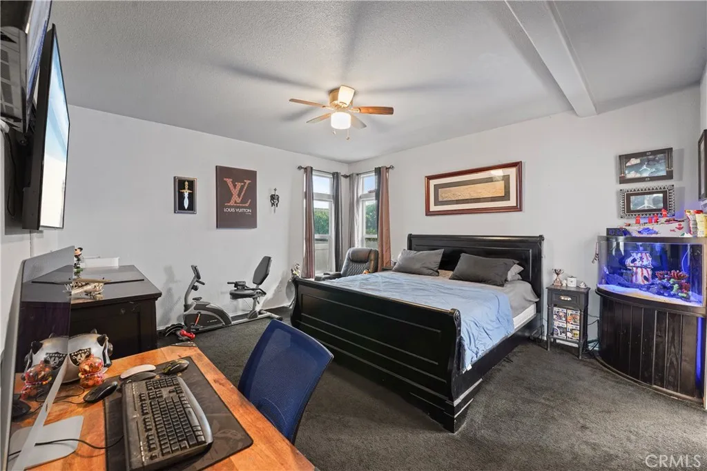 This charming home features 3 spacious bedrooms and 2 bathrooms, including a primary suite with a walk-in closet and a recently renovated primary bathroom with a double sink vanity. The versatile living space has high ceilings throughout, creating an open and airy atmosphere. The one-car garage has been thoughtfully converted into an extra bedroom, office, or den, with a separate storage room for convenience. Enjoy cozy evenings by the wood-burning fireplace in the living room. The separate laundry room adds to the home's functionality. The extra-wide driveway can comfortably fit 4 vehicles, making parking a breeze. Community amenities are plentiful, including a tennis/pickleball court, basketball court, children's play area, barbeque and picnic spots, swimming pool, Jacuzzi, a clubhouse with a full kitchen, meeting room, billiards, and table tennis room, as well as a workout gym. Additionally, there's an extra lot available for RV parking. This move-in-ready home combines comfort, style, and an active lifestyle in a fantastic Long Beach location!