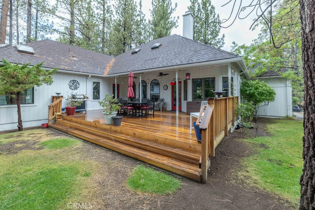 Welcome to your dream retreat in the highly sought-after Eagle Point neighborhood of Big Bear Lake! This beautifully maintained single-story home offers over 2,100 square feet of stylish mountain living, featuring 3 spacious bedrooms, 3 bathrooms, and an attached 2-car garageincluding an oversized bay ideal for an RV or boat. Set on a generous lot, the property offers ample parking, including a circular driveway for added convenience. Inside, youll find new flooring throughout, fresh interior and exterior paint, and a renovated kitchen that seamlessly blends modern finishes with warm mountain charm. The open-concept layout creates a light and airy feel, perfect for both entertaining and everyday living. Step out back to a large entertainers deck, perfect for relaxing or hosting guests, surrounded by a beautifully landscaped backyard thats fully fenced for privacy. The front yard is also professionally landscaped, enhancing curb appeal and creating a welcoming first impression. Additional highlights include a well-maintained interior, single-level design, and a location thats central to all of Big Bears best amenitiesjust minutes from the lake, ski resorts, hiking trails, shopping, and dining. Whether youre searching for a full-time residence, vacation home, or investment property, this one checks every box. Dont miss outschedule your private showing today!