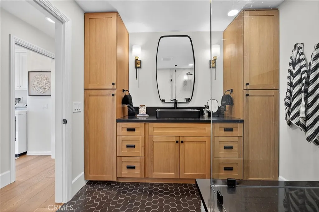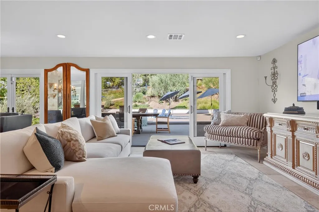 Your Yorba Linda Private Haven Awaits! Step into a world where luxury and tranquility meet. From the moment you arrive, this Yorba Linda estate's curb appeal will captivate you with its elegant masonry, intricate rooflines, and lush landscaping. Tucked away on a private double cul-de-sac lot, this home is the perfect blend of privacy and flow, ready to host everything from intimate get-togethers to grand celebrations. As you enter, walls of windows draw your eye to breathtaking mountain and city-light views, bathing the interiors in natural light. The expansive living spaces feature wide-plank wood floors, luxurious travertine, rich wood trim, and custom ceilings. The gourmet kitchen is a chef's dream with a massive island, top-of-the-line Thermador appliances, and a large walk-in pantry with hidden storage, all while open to the family and living rooms. The primary suite is a true retreat, offering a spacious bedroom with custom ceiling details and a spa-like ensuite. Here you'll find dual vanities, a freestanding tub, and an oversized walk-in showerall overlooking the serene backyard. The secondary bedrooms are generously sized with stunning views, sharing a large remodeled bathroom. The gorgeous upstairs laundry room feels luxurious, featuring custom cabinetry, granite countertops, and crystal lighting. Downstairs, a flexible bedroom with French doors leading to the backyard and an adjacent custom bath is perfect for guests or multi-generational living. Step outside and you'll discover a resort-style paradise. A newly remodeled saltwater pool and spa with a Baja step and