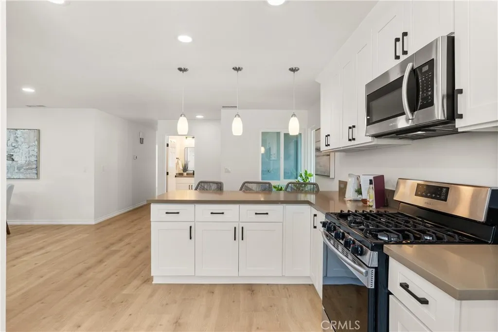 Welcome to this beautifully updated single-story home located in one of the most convenient and desirable pockets of Huntington Beach. As you arrive, you're immediately impressed by the freshly landscaped and manicured front yard, with 18x18 stepping stone pathway. A newly installed front door welcomes you inside, where you'll be greeted by wide-plank luxury vinyl flooring in a warm tones, fresh interior paint, and a spacious open floorplan bathed in natural light. The living and dining areas flow effortlessly into the heart of the homea remodeled kitchen designed for both everyday living and entertaining. Enjoy a custom sit-up breakfast counter, sleek quartz countertops, all stainless steel appliances and a bay window that brings in even more sunlight. The cabinetry has been freshly painted and updated with new hardware, soft-close drawers, and a Lazy Susan to maximize storage. Custom pendant lighting adds style, while a deep stainless steel sink and microwave/hood combo complete this impressive space. Beyond the living room is a large and inviting family room centered around one of two cozy fireplaces. A sliding glass door that opens to the private, low-maintenance backyard, a space offering indoor-outdoor living at its best. Whether relaxing under the caf lights, enjoying the block wall-enclosed yard, or staying cool inside with the high-performing central HVAC system, comfort is felt throughout all 1,681 square feet of living space. The home features 3 bedrooms, each with dual mirrored closet doors. Bedroom three offers French doors with direct access to the backyardper