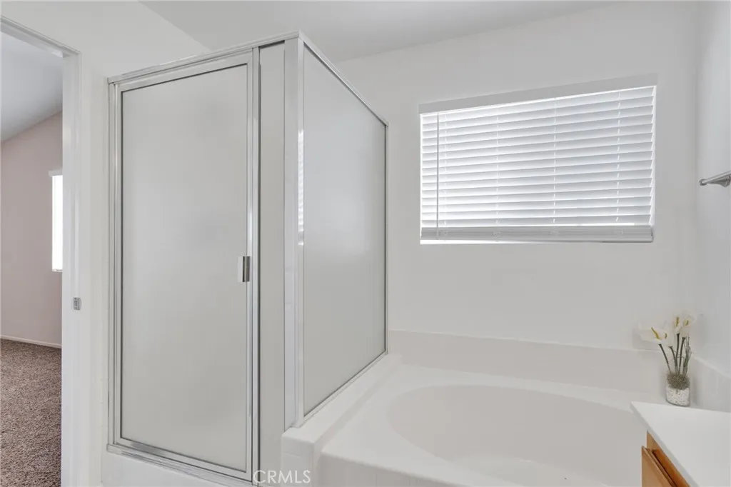 Welcome to this beautiful move-in ready 2-story home featuring a rare 4-car garage and spacious open floor plan! The main level offers 1 bedroom and a full bathroom, perfect for guests or multi-generational living. Upstairs, youll find a loft, a convenient indoor laundry room, and a luxurious master suite with his-and-hers sinks, separate shower and tub, a large walk-in closet, and an additional sitting area with its own closet. Recent upgrades include fresh interior paint, new carpet, and new window coverings, making this home move-in ready. This home also offers security doors, RV access, a covered patio, and a fully fenced backyard with plenty of room to entertain. Ideally located near I-15 and Highway 395 for easy commuting, and just minutes from shopping centers Dont miss the opportunity to celebrate the holidays in your new home!