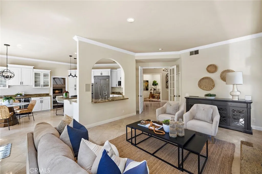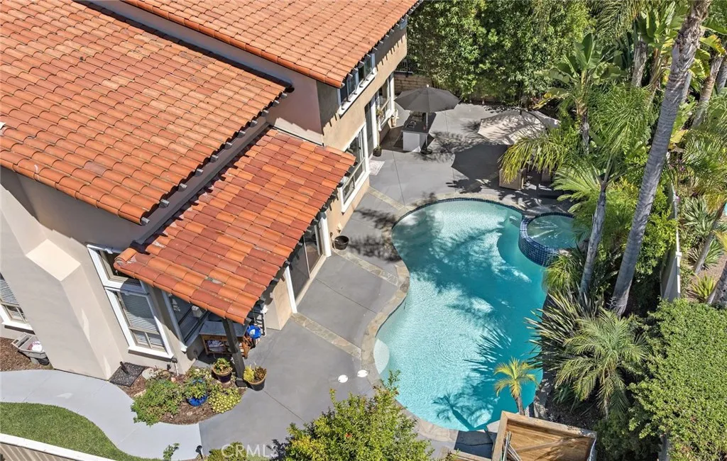 Tucked away at the end of a quiet cul-de-sac in the exclusive gates of Rancho San Juan Estates, this 4-bedroom, 3.5-bath residence captures the essence of resort-style living with a timeless sense of elegance. Surrounded by lush tropical landscaping, the home is designed to be both a serene retreat and an entertainers dream. Inside, soaring ceilings and walls of windows flood the open-concept layout with natural light, highlighting upscale finishes at every turn. The gourmet kitchen is the heart of the home, featuring granite countertops, stainless steel appliances, a coffee bar, and an oversized island ideal for casual gatherings. The primary suite is a private sanctuary, complete with a romantic double-sided fireplace, spa-like bathroom, soaking tub, dual vanities, and an expansive walk-in closet. A versatile main-level office can easily transform into a fifth bedroom, while the loft adds a bonus living space. The backyard feels like a private resortcomplete with a sparkling pool and raised spa, framed by mature palms and vibrant greenery. A built-in BBQ and generous patio make outdoor entertaining effortless all year long. Additional highlights include a formal dining room, cozy living room fireplace, a 3-car garage with epoxy flooring and storage, and access to exclusive community amenities. The owner has meticulously maintained this property since purchasing it, including multiple exterior painting, roof repairs, water heater, furnace, landscape, hardscape and drainage, fencing, pool equipment, garage painting, flooring, lighting, carpet, cabinets, sinks, toilets, inte