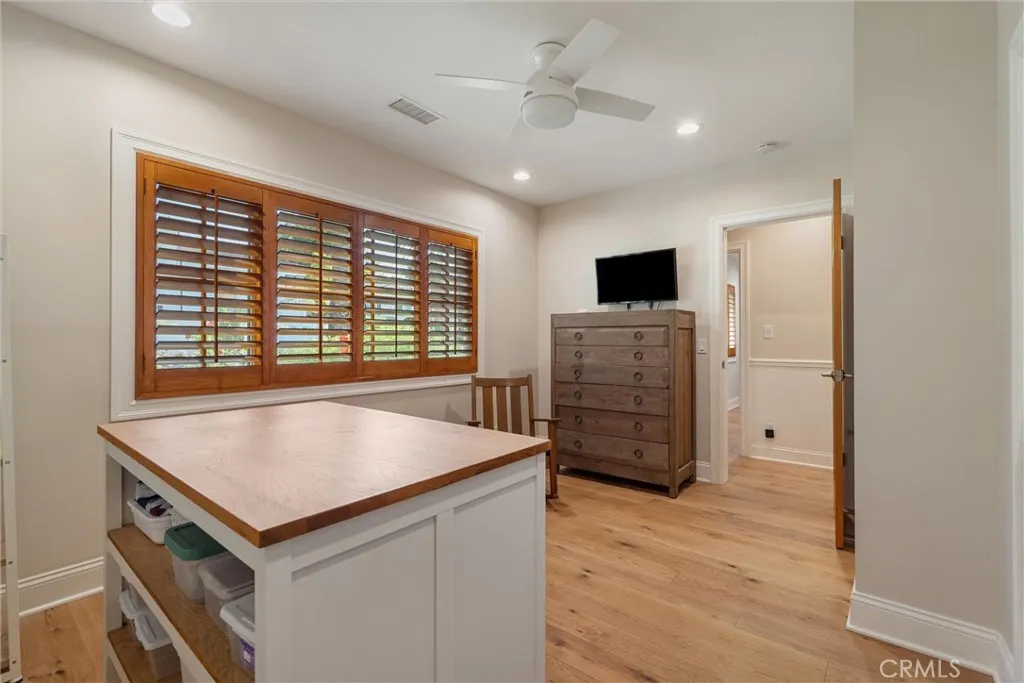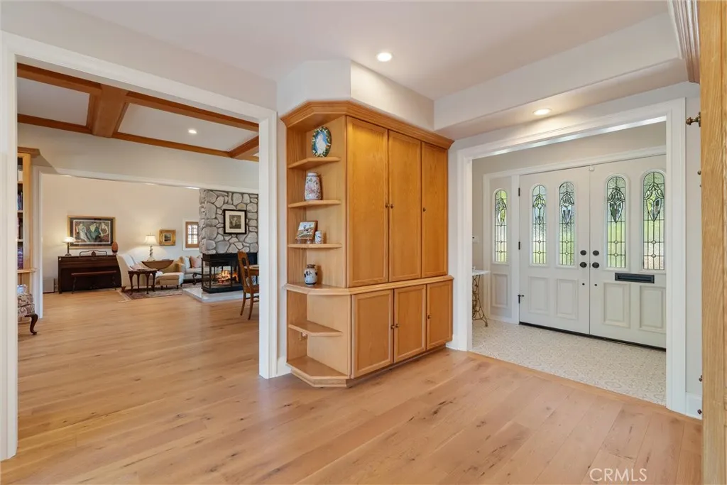 Nestled in the heart of The Grove in the highly coveted Valmonte neighborhood of Palos Verdes Estates, this single-level Craftsman style home sits on a large, grassy corner lot along a picturesque, palm tree lined street. Offering 3 bedrooms and 2 baths, it features approximately 2,000 sf of living space on an 8,349 sf lot, complete with a two-car garage. Step through the front doors and youre greeted by a light-filled foyer and an open floor plan that seamlessly connects the formal dining room, a cozy reading nook, and the captivating great room with vaulted ceilings and a fireplace. New wide white-oak plank floors and expansive windows bathe the interiors in natural light, creating a warm and welcoming atmosphere. On the opposite wing, the updated kitchen boasts newer cabinets, quartz countertops, stainless-steel appliances, a Sub-Zero refrigerator, and a charming picture window overlooking the backyard. Two bedrooms share a stylishly renovated hall bath with a walk-in shower and a large soaking tub. A separate laundry room with built-in cabinets, laundry bins, and a sink adds convenience, while a pantry closet leading to basement wine storage, and classic plantation shutters offer thoughtful extras. The primary suite features a cedar-lined closet, an updated en-suite bath, and French doors that open to the back patio. Additional French doors between the kitchen and dining room lead to the homes spacious outdoor retreatcomplete with a striking exercise pool with a waterfall feature, a relaxing spa, and a cozy outdoor fireplace surrounded by generous deck spaceperfect for