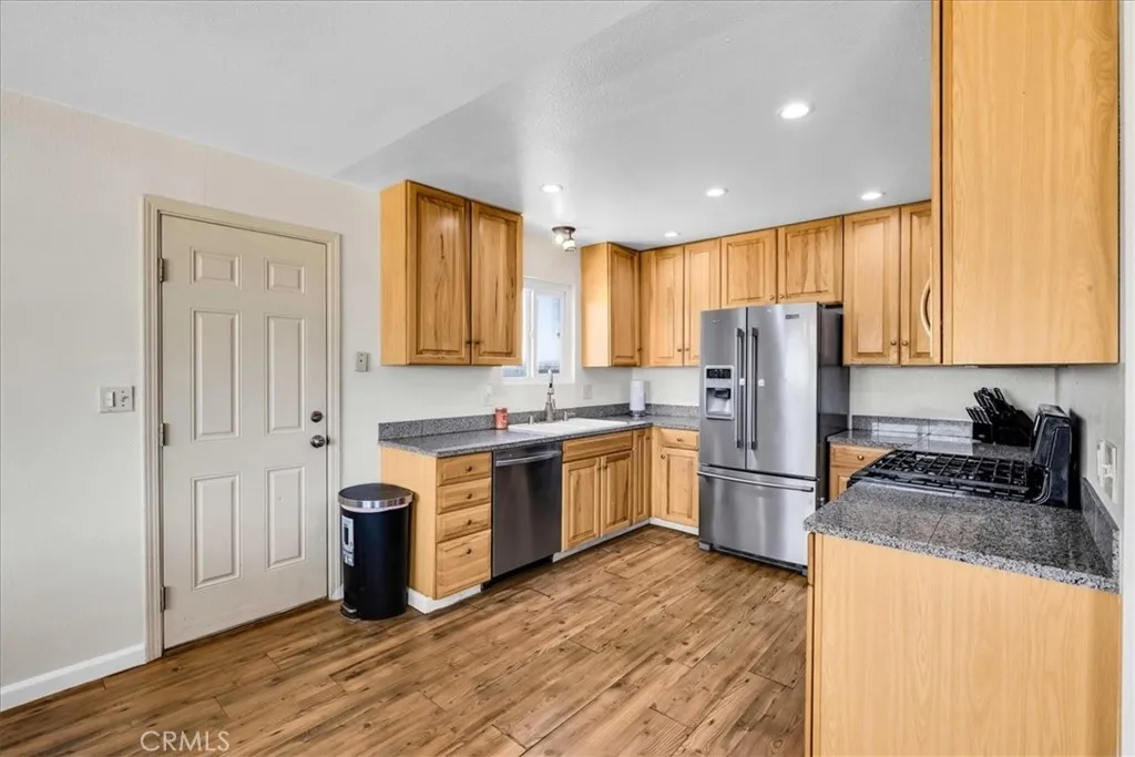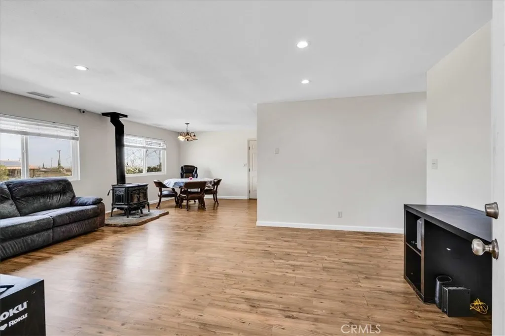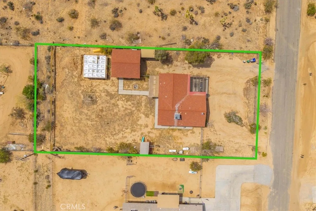 This exceptional 3-bedroom, 2.5-bathroom residence is nestled on a spacious half-acre lot in the desirable Mesa area of Yucca Valley. Conveniently located off paved Caliente St, this property offers both privacy and functionality, with thoughtful features and upgrades throughout. As you approach, you'll notice the fully fenced property, complete with a detached, fully finished garage, a sizeable storage shed, and a sunken walipini-style greenhouseperfect for gardening enthusiasts. Majestic pines provide shade and add to the serene ambiance of the grounds. The entrance features a charming courtyard, fully enclosed with high block walls for privacy, wind protection, and shaded for comforta true outdoor retreat. Step inside to discover a spacious open-concept living area, boasting newer dual-pane windows, LED lighting, and a cozy wood stove set on a striking rustic limestone hearth. The adjoining dining area flows seamlessly into the updated kitchen, which impresses with its sleek granite countertops, stainless steel appliances, and abundant warm wooden cabinetry. A side door offers convenient access to the side yard with RV parking. The guest bathroom is beautifully finished with a tiled tub/shower combo and tiled countertops. Two guest bedrooms provide plenty of comfort; one features a large closet, while the other offers a walk-in closet and an attached private half bath. The large primary suite is a haven of relaxation, with its own private sliding door to the courtyard, a large walk-in closet, and a luxurious master bathroom with a fully tiled walk-in shower and tiled cou