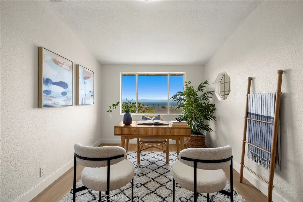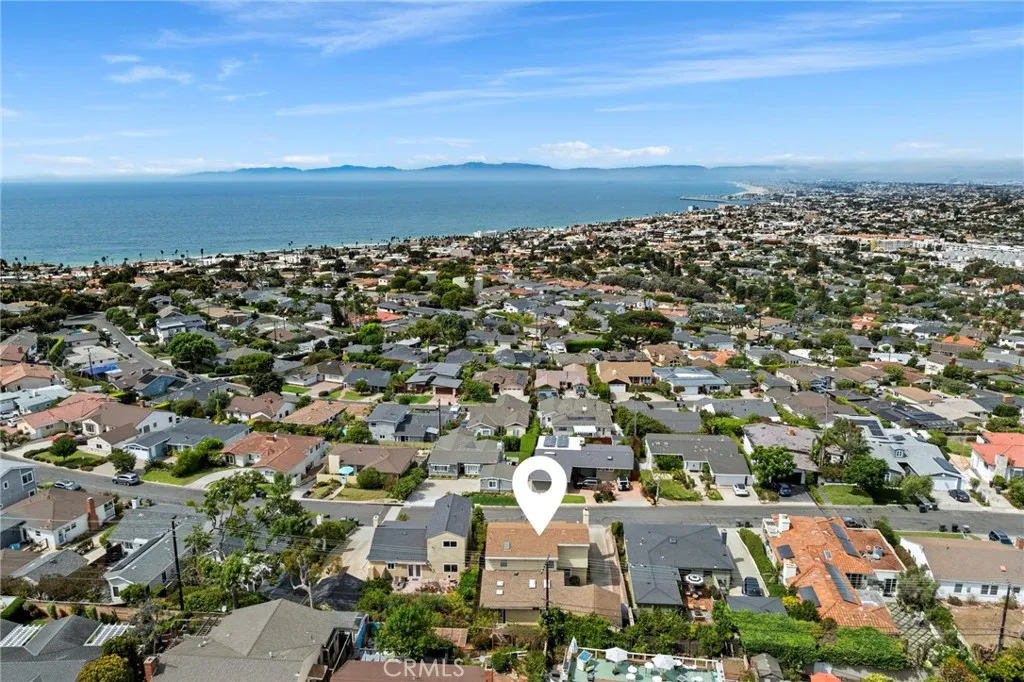 On a quiet street in the upper Hollywood Riviera, this bright and airy residence captures breathtaking views of the ocean, sparkling city lights, and the iconic Queens Necklace coastline. Expansive windows showcase the scenery from nearly every roomincluding the living and dining areas, open-concept kitchen, and the luxurious primary suite with its own private balcony and retreat. Thoughtfully placed skylights bathe the interiors in abundant sunshine and natural light. Offering five spacious bedrooms plus two additional ocean view rooms ideal for offices or hobby spaces, the home provides both versatility and comfortall enhanced by sweeping ocean vistas. The lower level includes three generously sized bedrooms and two full baths, while the upper level is dedicated to the primary wing. Here, panoramic views can be savored from both the bedroom and spa-inspired bath, while a private retreat overlooking the ocean offers the perfect place to relax. Out back, a tranquil garden with fruit trees creates a peaceful escape. All of this is just moments from the beach, award-winning schools, and the charming Riviera Village with its restaurants and boutique shops.