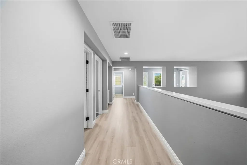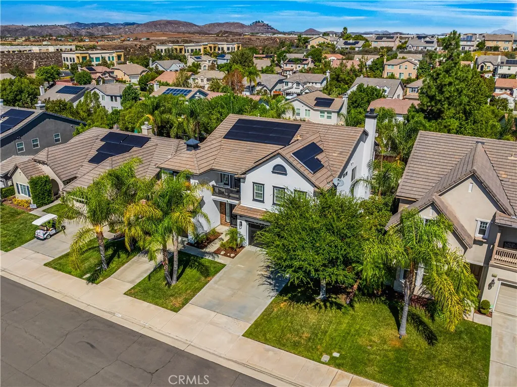Welcome to 30618 Lily Pond Lane, a stunning 5-bedroom, 3-bath residence with a 3-car garage, nestled in the highly desirable Central Park community of Murrieta. This beautifully upgraded home blends luxury, comfort, and efficiency with soaring vaulted ceilings, a grand spiral staircase, and upgraded waterproof laminate flooring throughout. The open-concept family room with a cozy fireplace flows seamlessly into the gourmet kitchen, which boasts brand-new quartz countertops, a large center island, and freshly painted cabinets. A downstairs bedroom with a nearby bathroom offers ideal guest accommodations, while the upstairs master suite serves as a true retreat with a jetted tub, walk-in shower, dual vanities, and a massive walk-in closet, complemented by three additional spacious bedrooms and a well-appointed bathroom. The backyard is designed for both relaxation and entertainment with a sparkling saltwater pool featuring a new pump and safety fence, along with freshly painted exterior surfaces and patio cover. Efficiency upgrades abound, including a 17.00 kW Tesla solar panel system, Tesla Charger subpanel, new HVAC system, new dishwasher, and new water heater, ensuring long-term savings and convenience. Residents of Central Park enjoy exceptional HOA amenities such as a clubhouse, pool, spa, tennis courts, playgrounds, walking trails, and beautifully maintained parks, all while benefiting from low HOA fees and low taxes. Zoned for the prestigious Temecula School District, this home also offers the rare opportunity for a conventional loan with a very low assumable interest